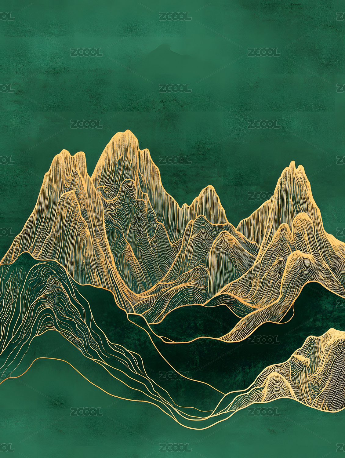 国潮风金色线条青山山脉
