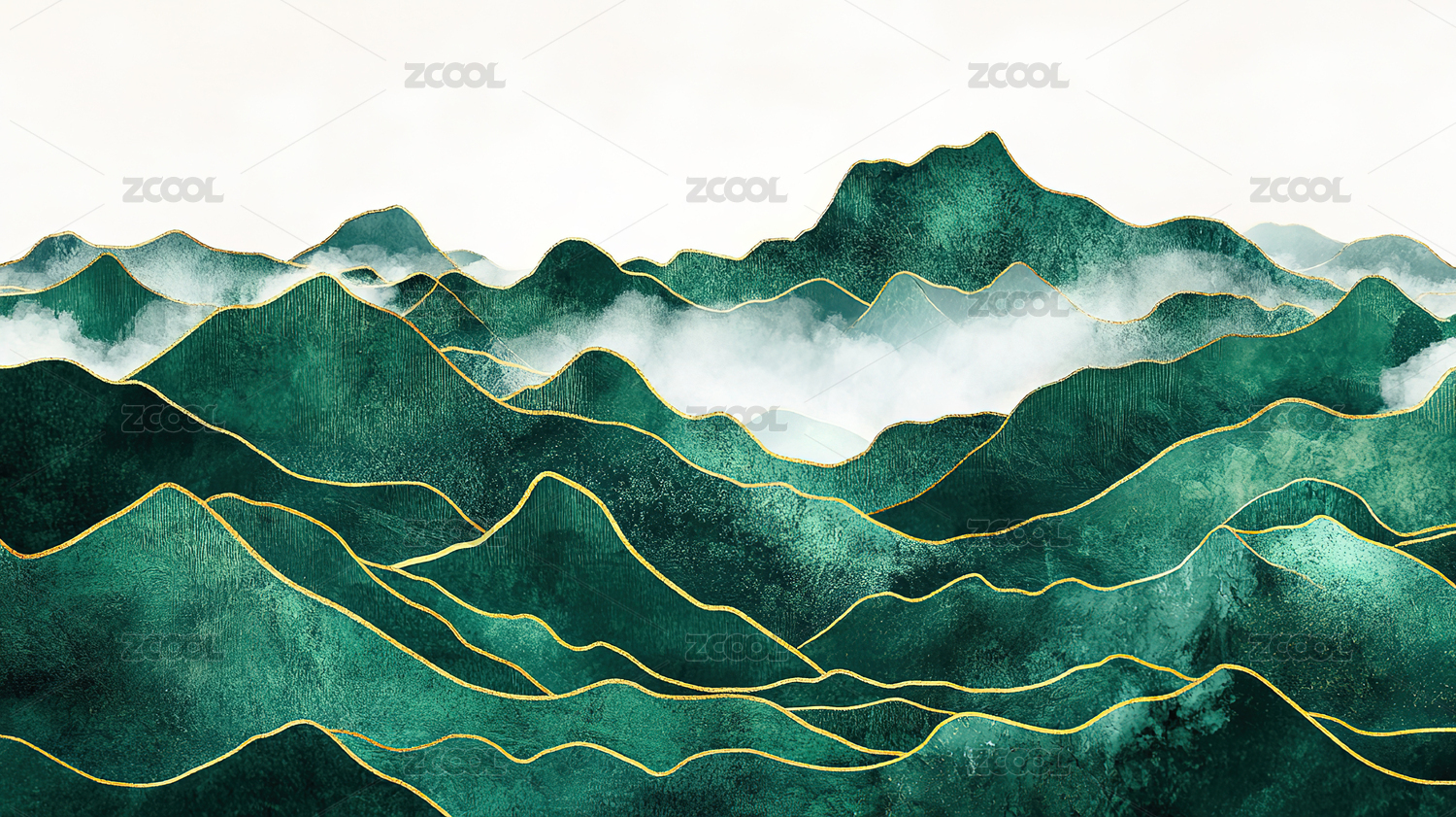 青绿山水鎏金插画