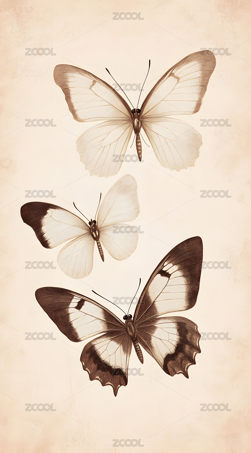 唯美梦幻展翅飞翔的蝴蝶图案印花插画