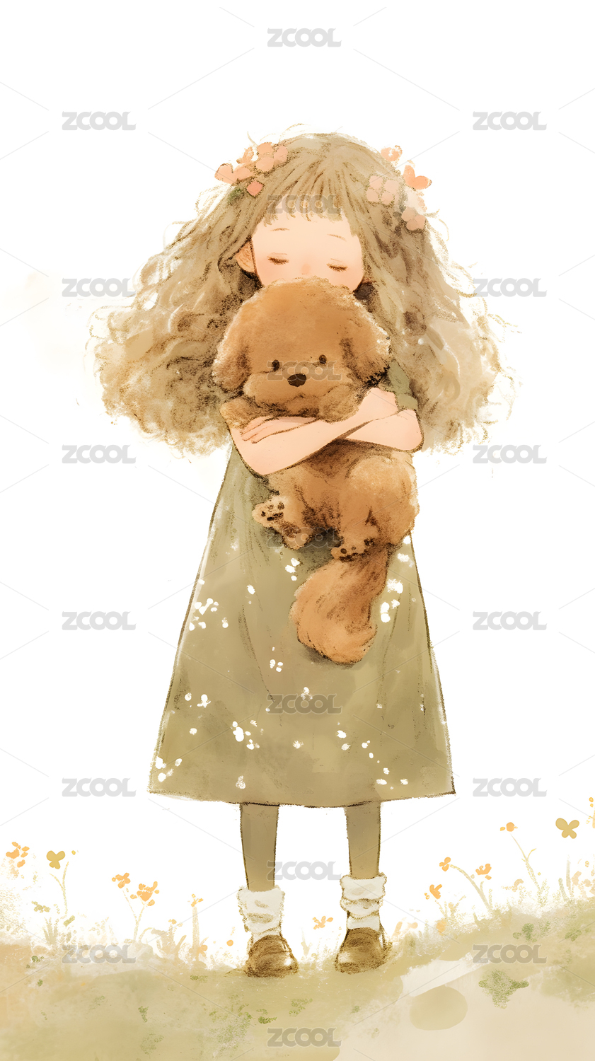 两只可爱Q版萌萌的卡通女孩和狗狗的角色