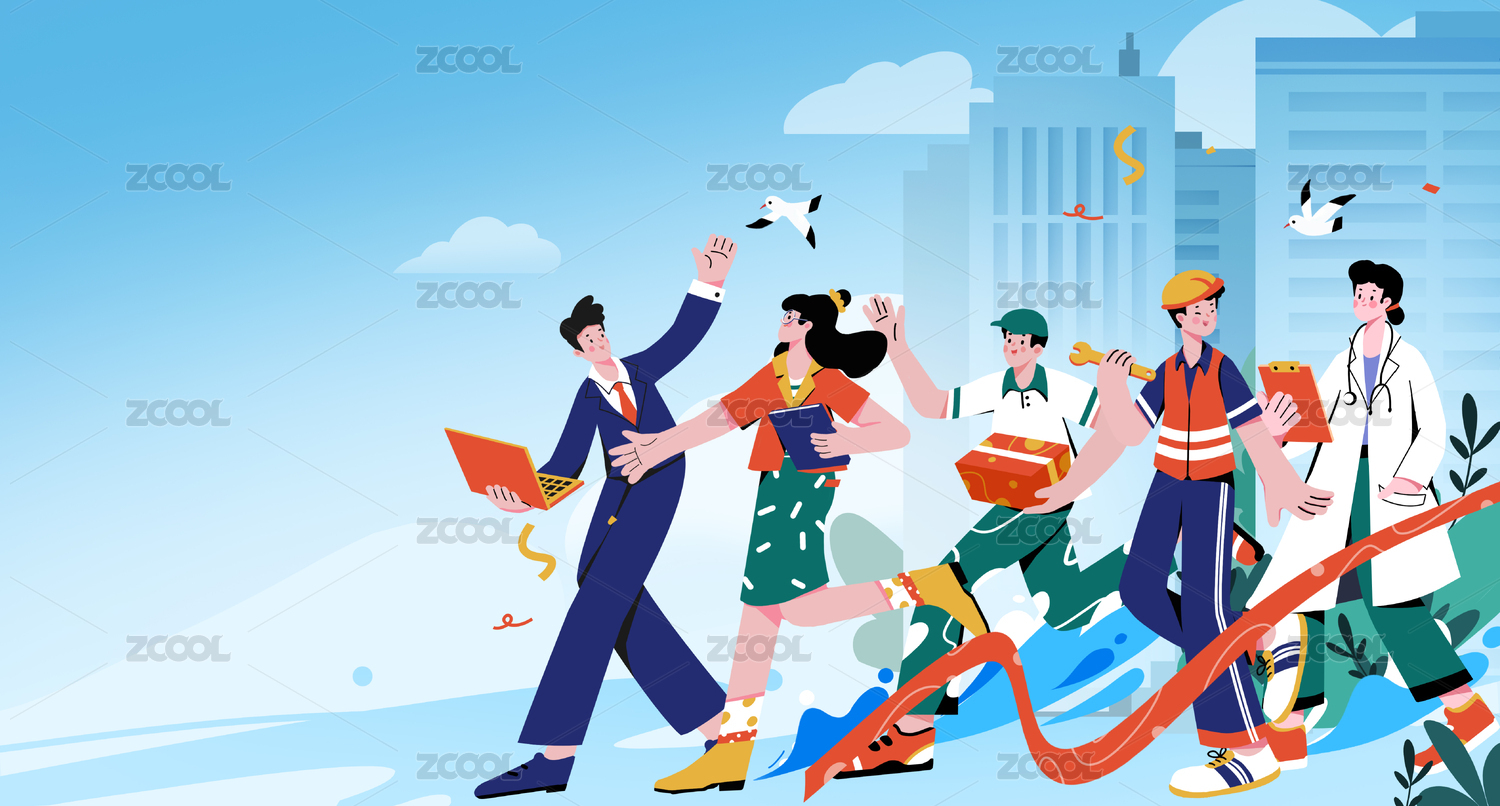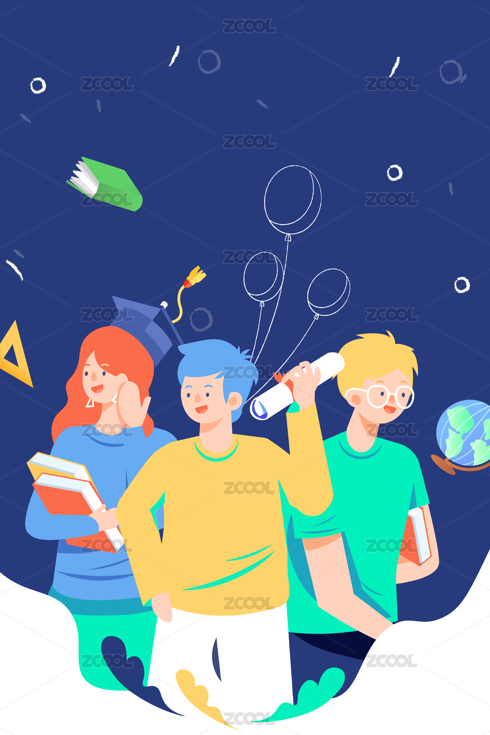 五四青年节朋友聚会年轻人高考毕业团队插画