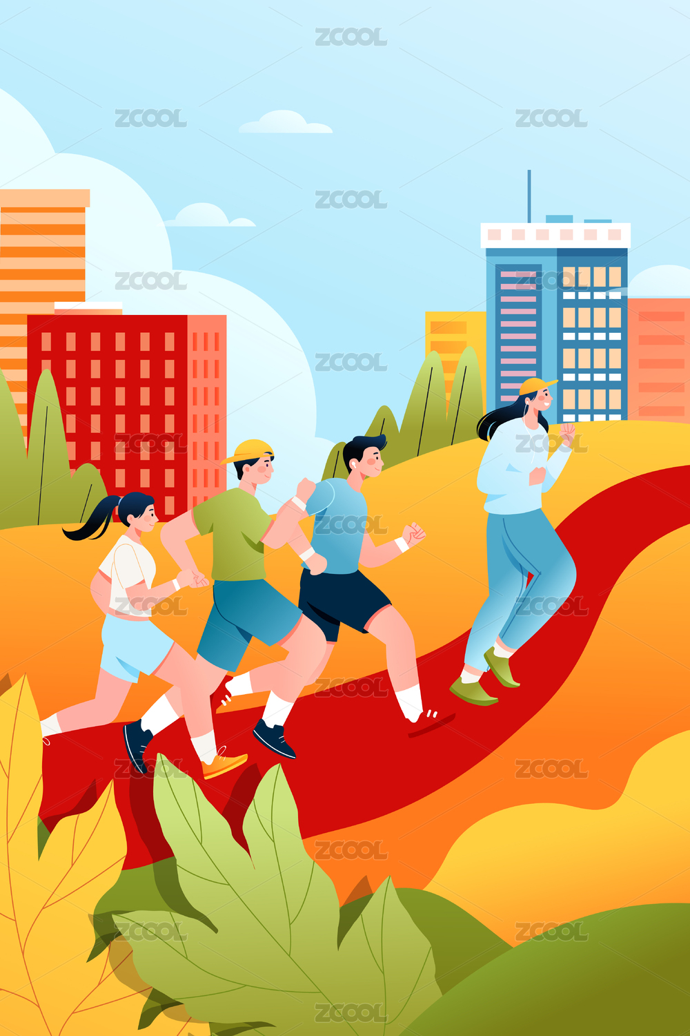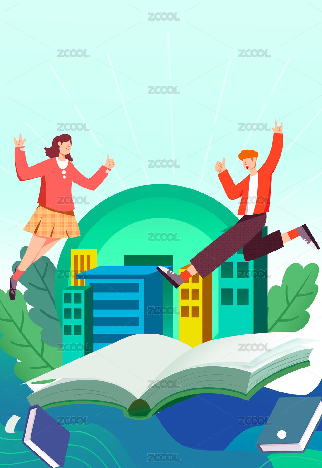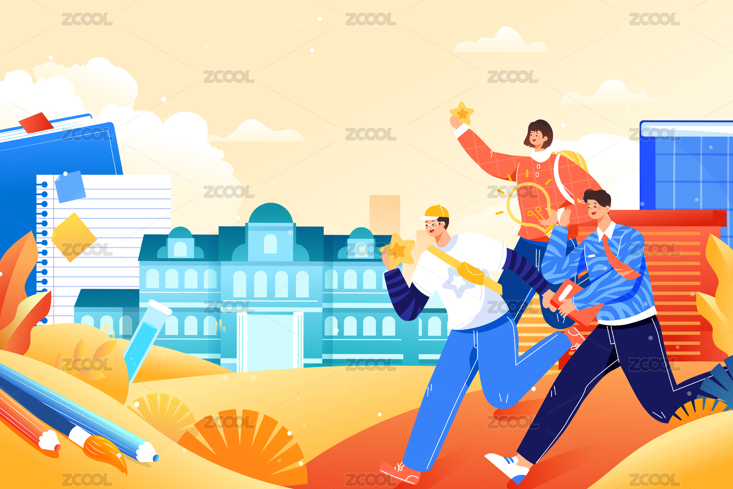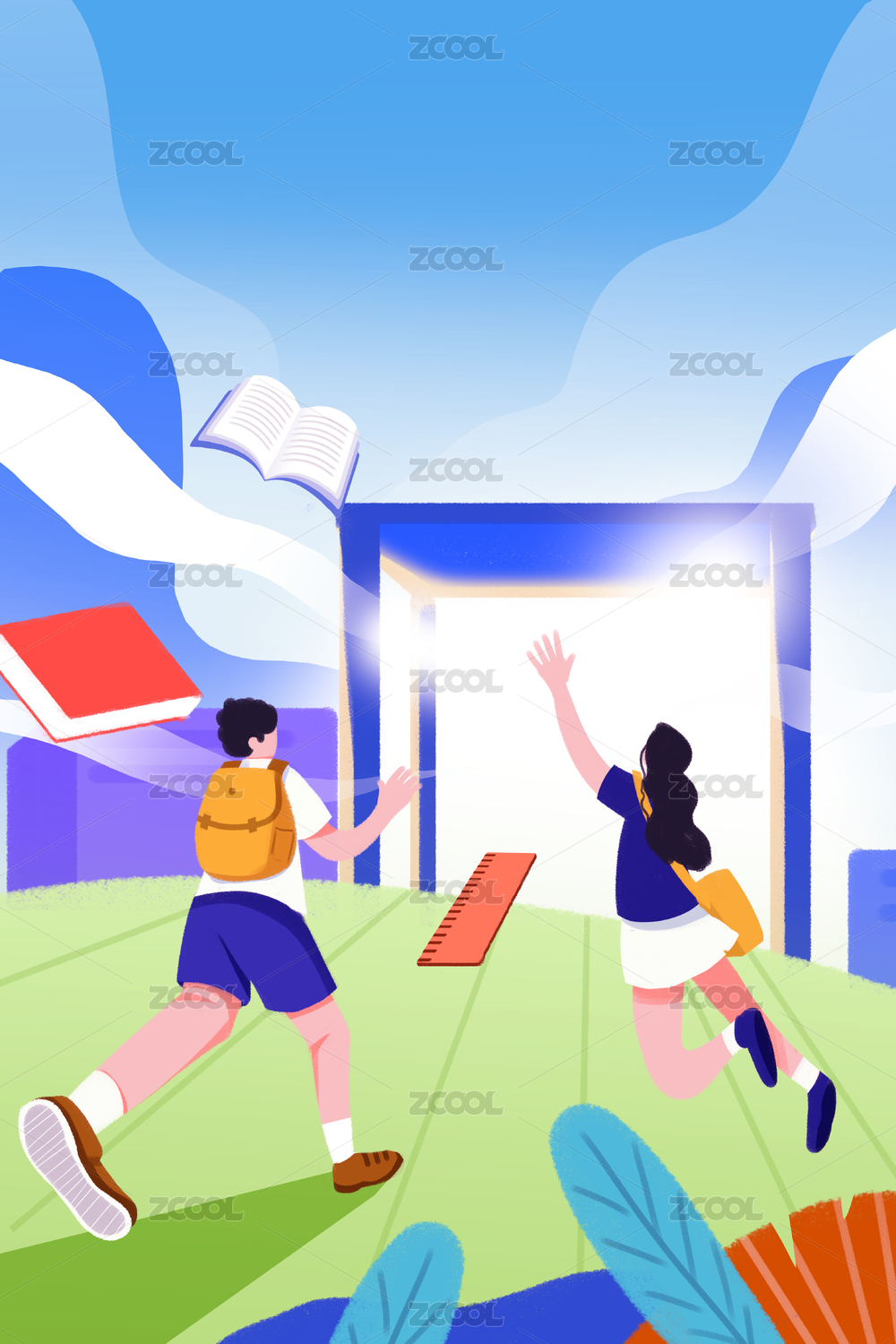 人物奔跑学习开学插画学生高考冲刺加油海报