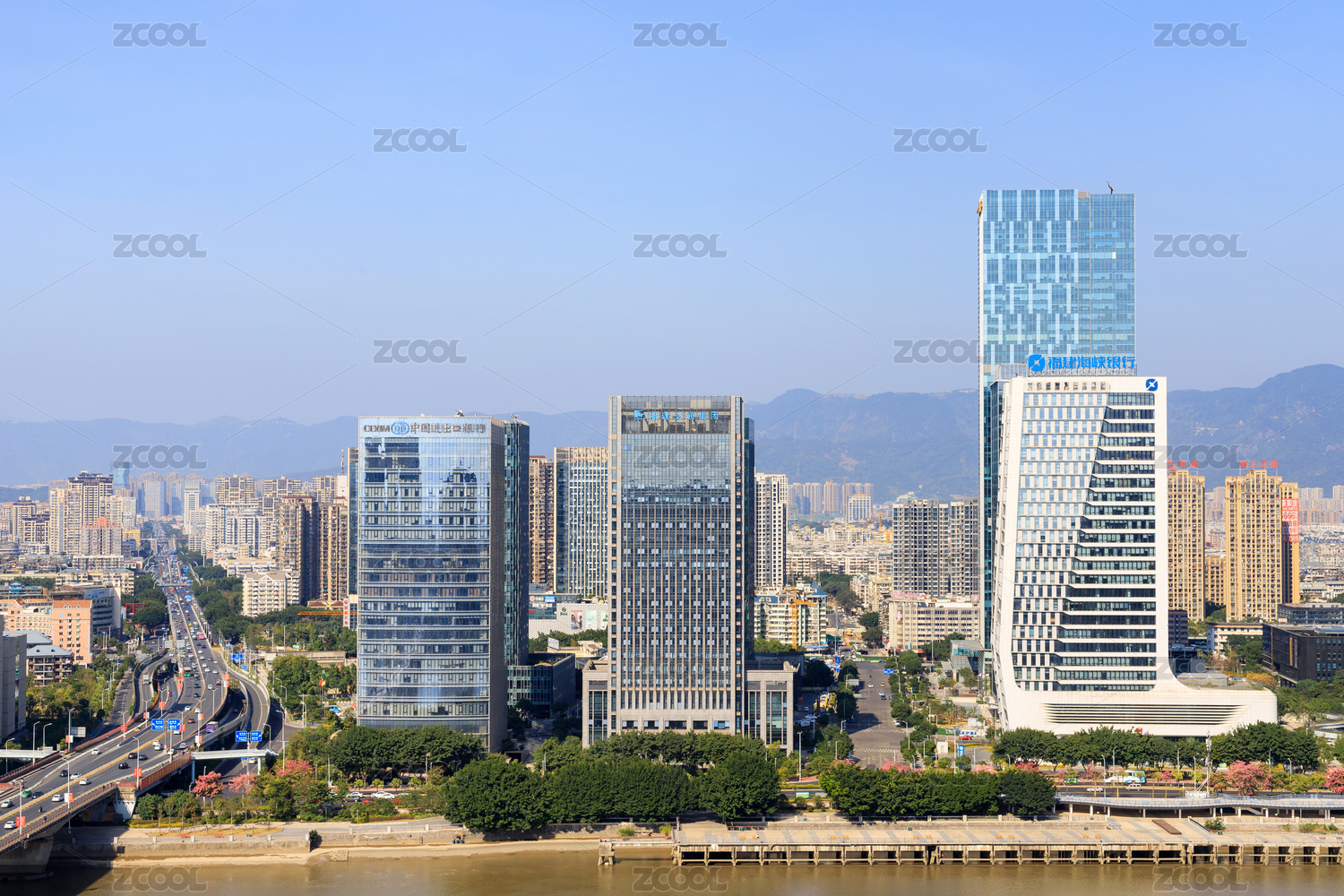 中国福建福州市江滨大道周边建筑群