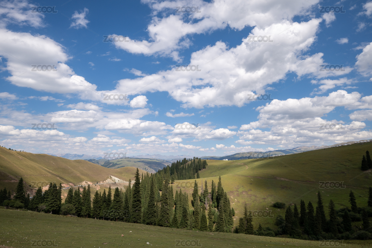 中国新疆伊犁天山夏季高山森林草原风光
