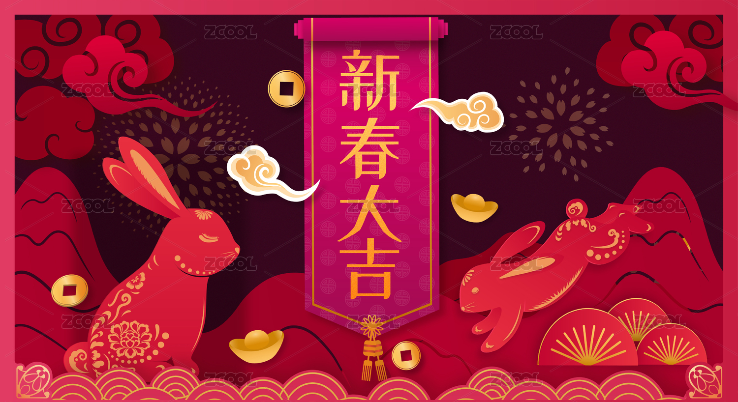 矢量,春节,新年,传统节日,除夕,兔年,2023年,兔子,十二生肖,海报