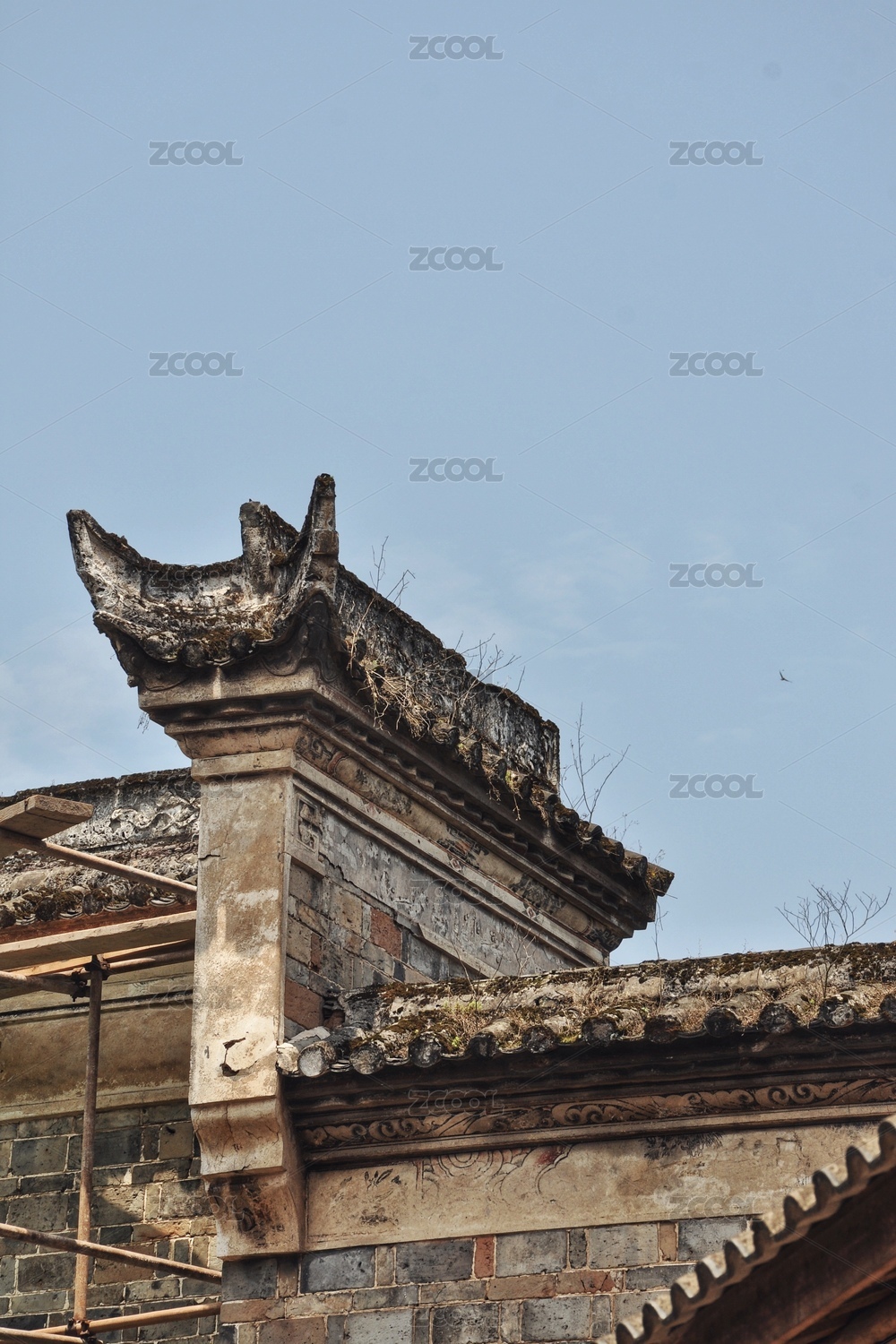 江西省婺源县赋春镇古民居屋檐马头墙建筑景观