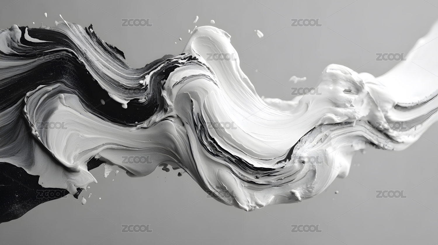 抽象的白色笔触在黑色背景上,黑白漆笔刷