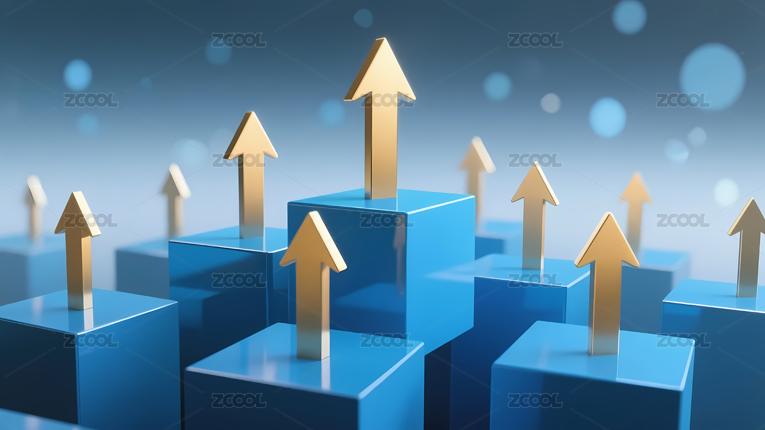 蓝色立方体金色箭头背景