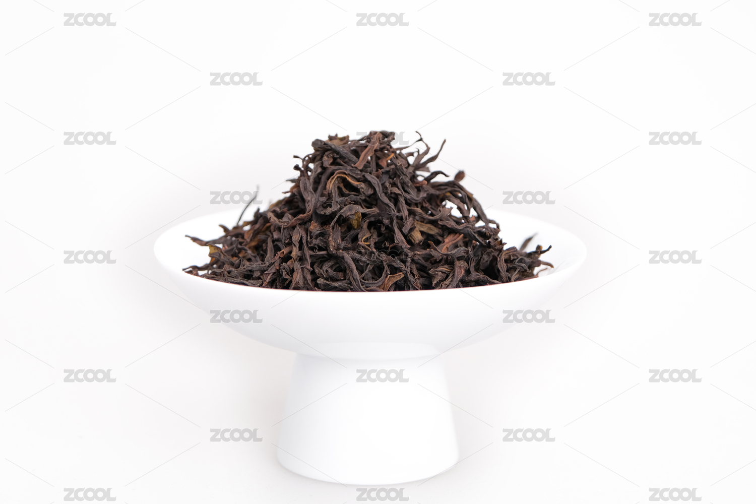 普洱茶生茶茶叶放在瓷盘里俯拍