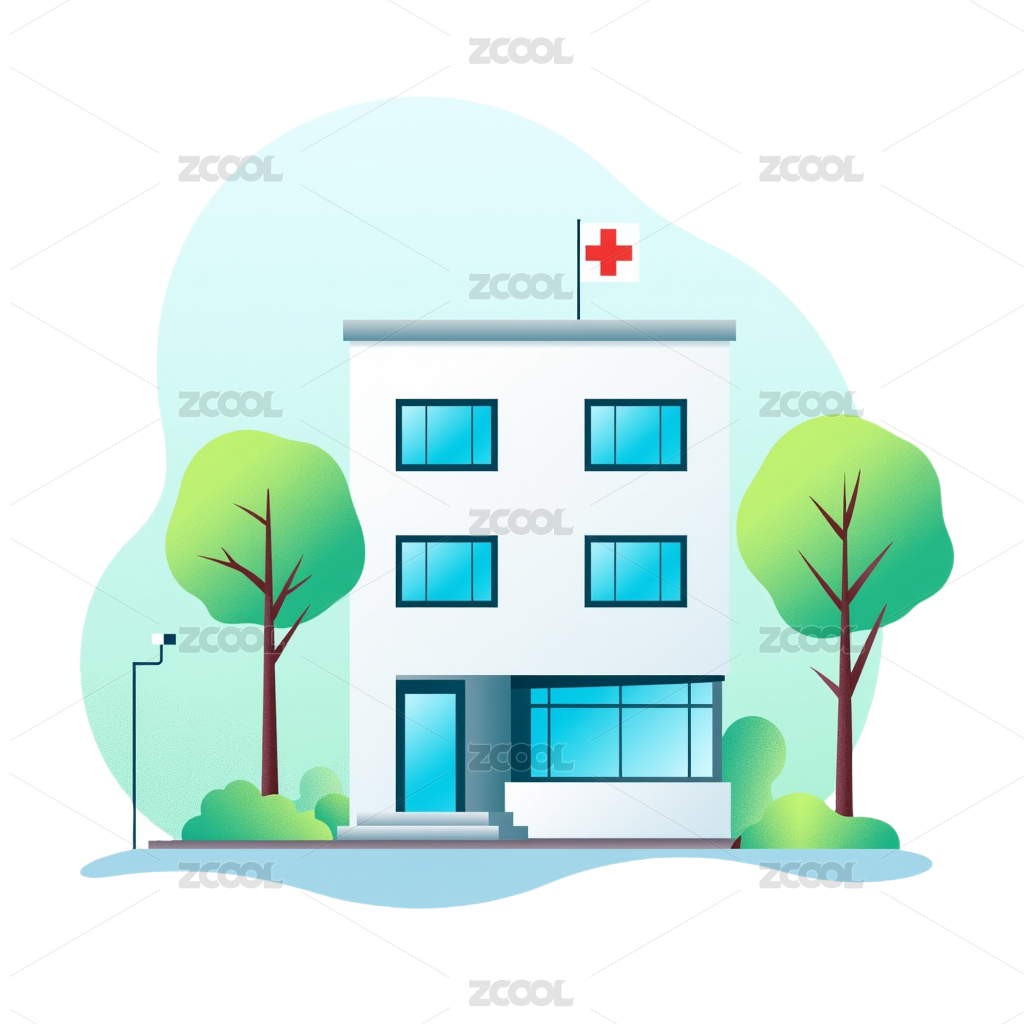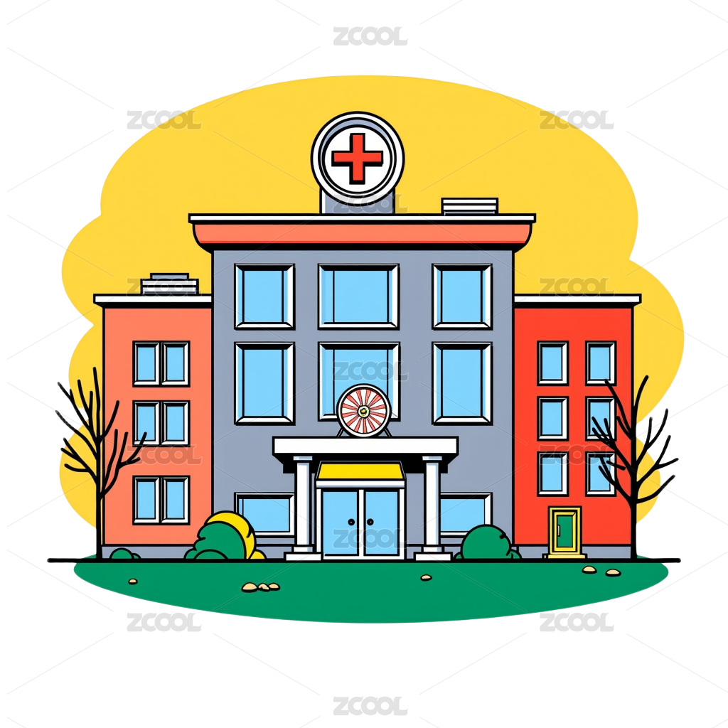扁平风,医院,卫生院,救护,医疗,建筑,大楼,插画