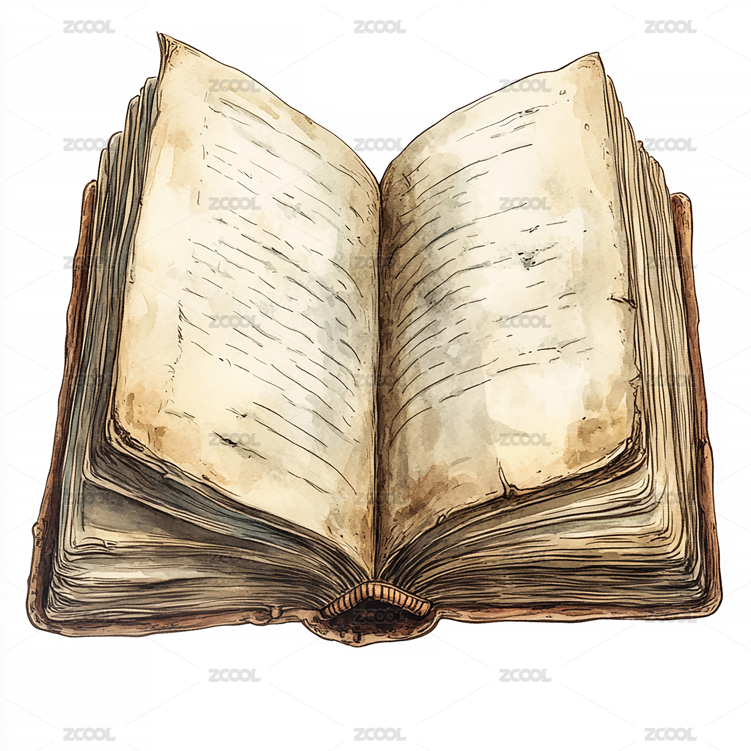 水彩风翻开的旧书本
