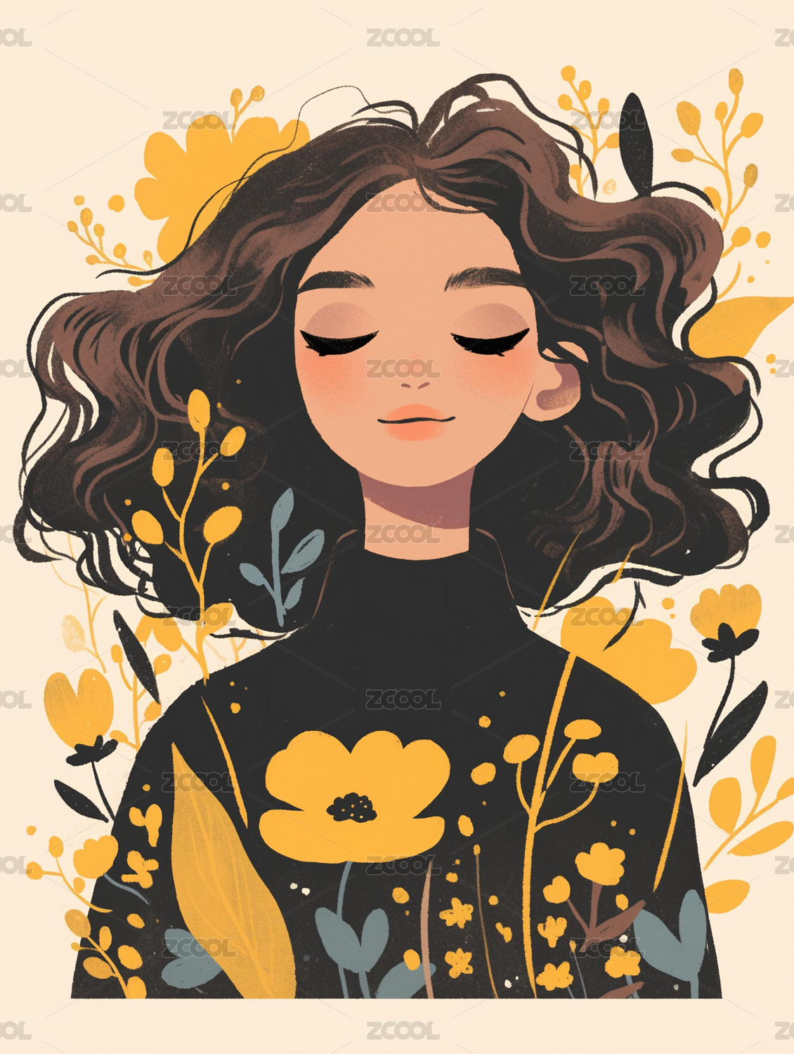 少女女性女孩拿着花母亲节妇女节女神节插画