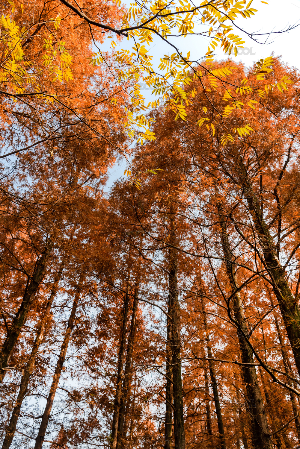 中国广东东莞中央群岛公园,秋天落羽杉风光