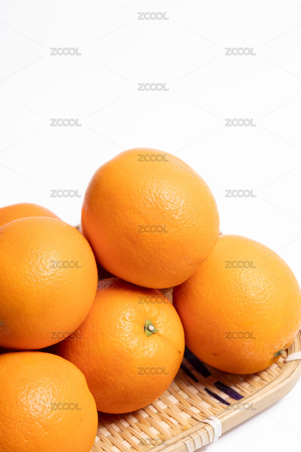 木底垫子上放着一筐纽荷尔脐橙和脐橙切面