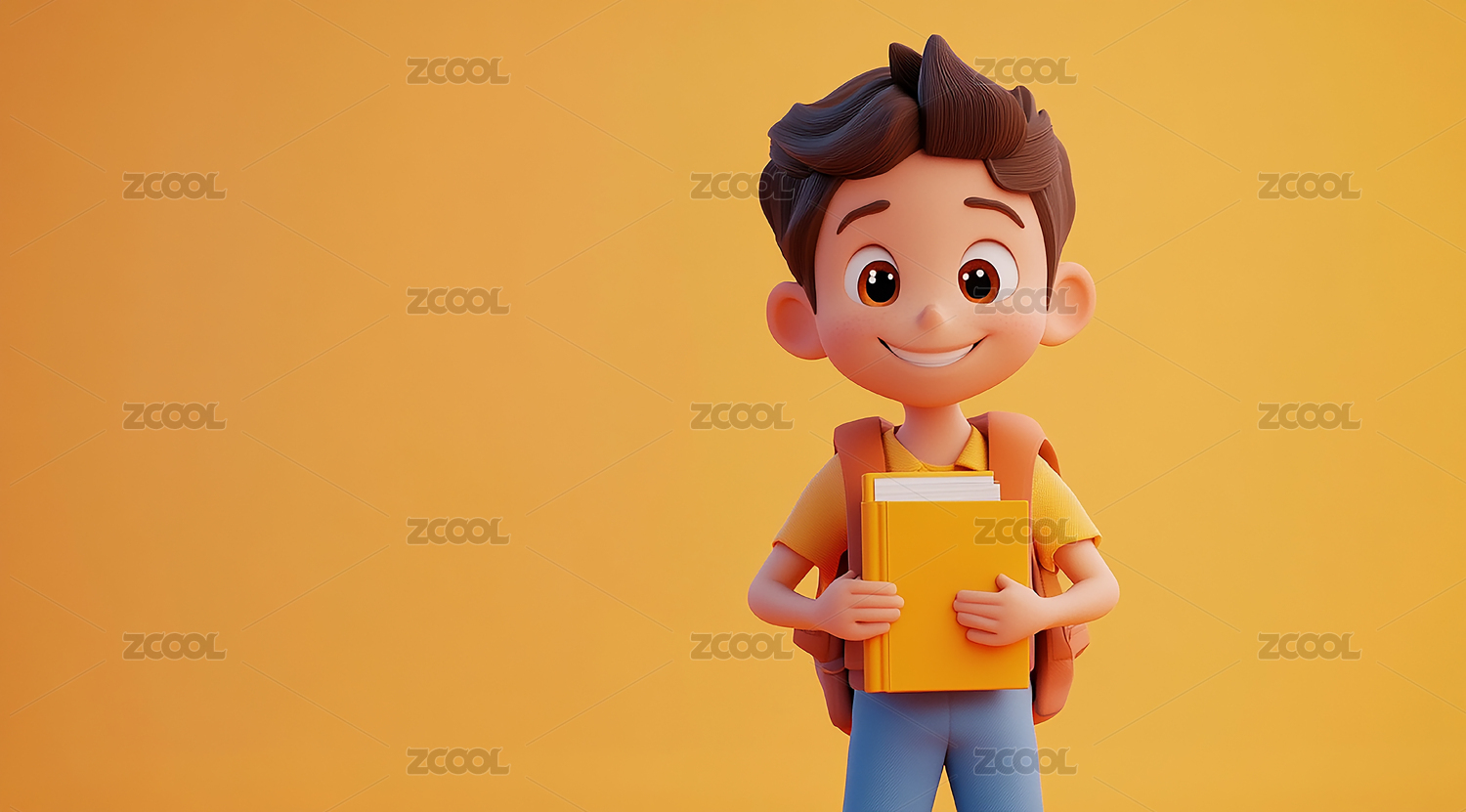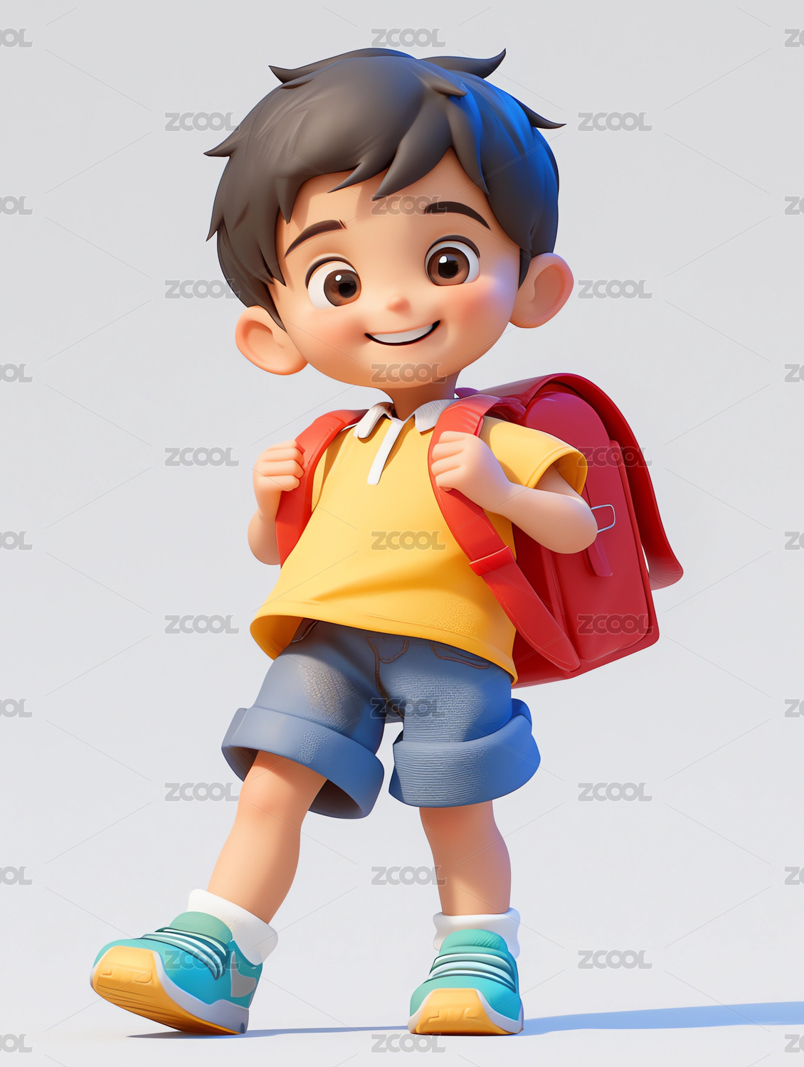 3d卡通背着书包去上学的男孩