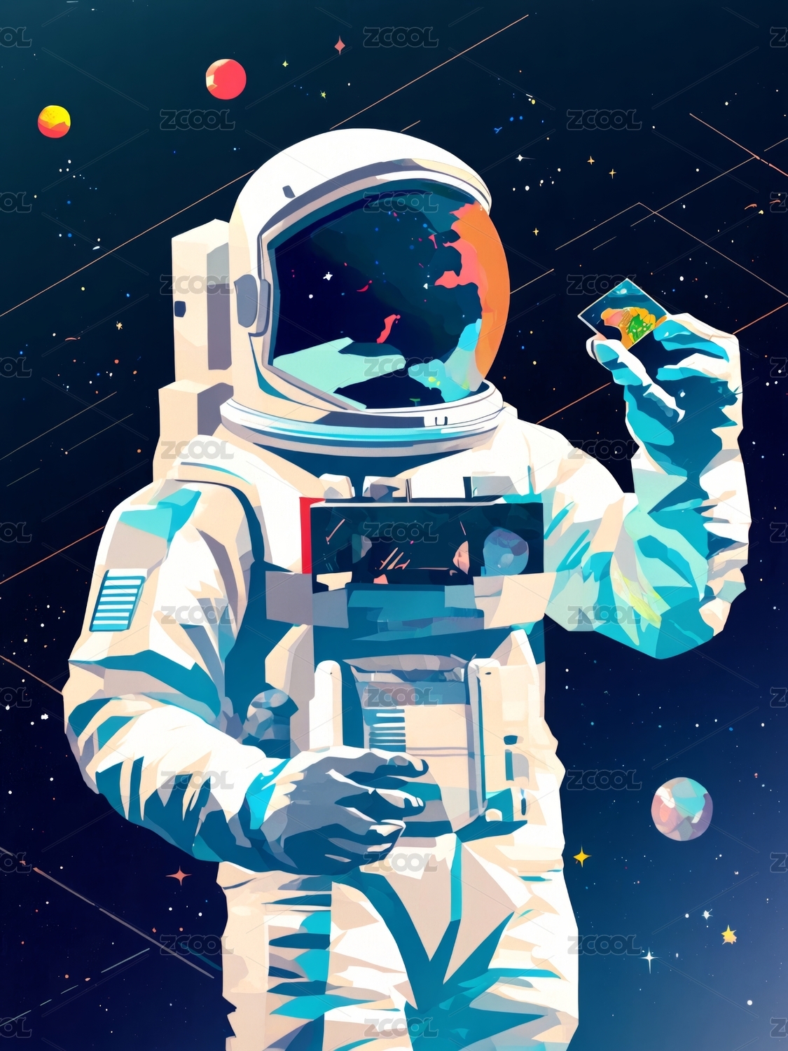 炫彩太空星球宇航员梦幻插画