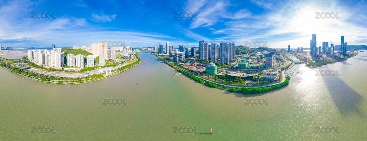 粤港澳大湾区的珠海横琴和澳门城市风光