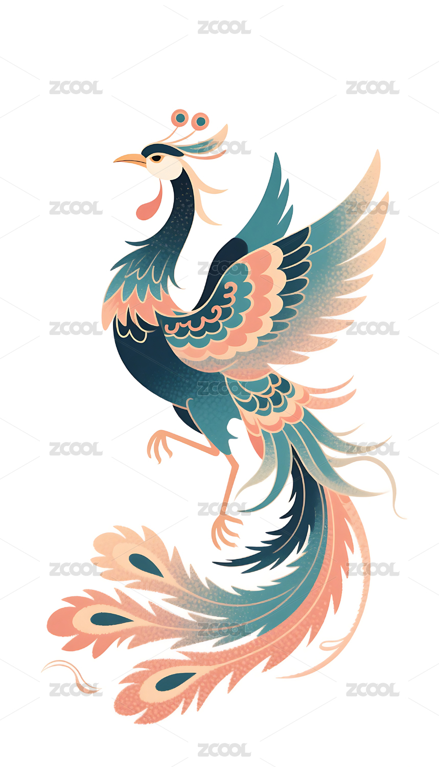 国潮风中国传统吉祥动物凤凰展翅鸟