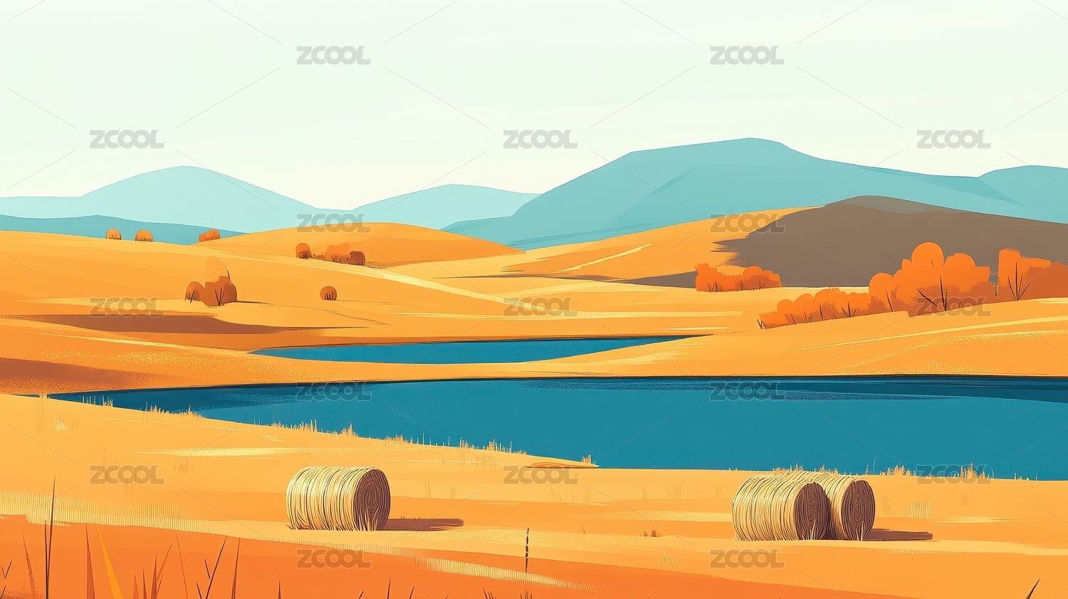 秋日草原与河流风光