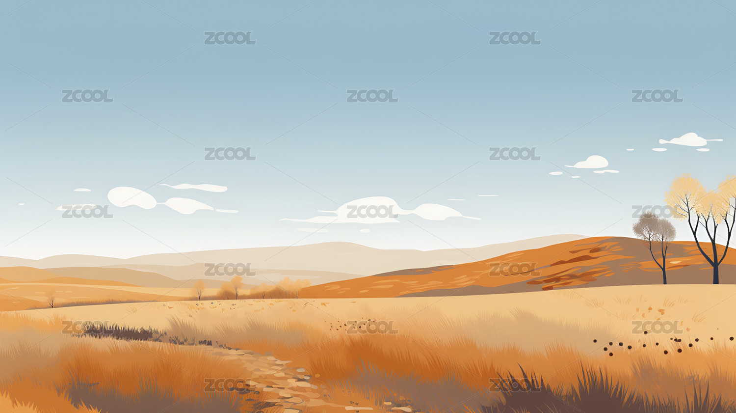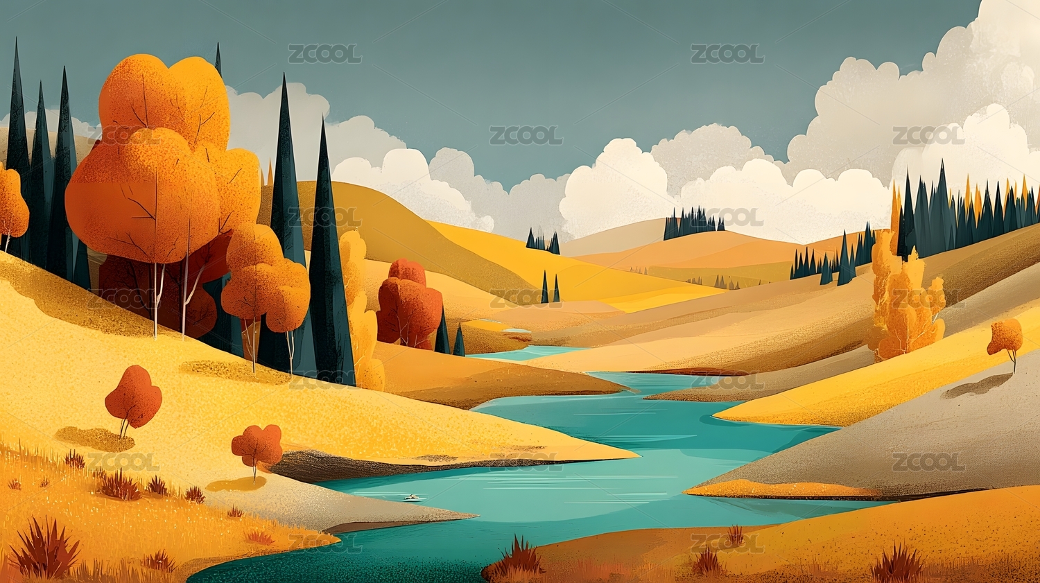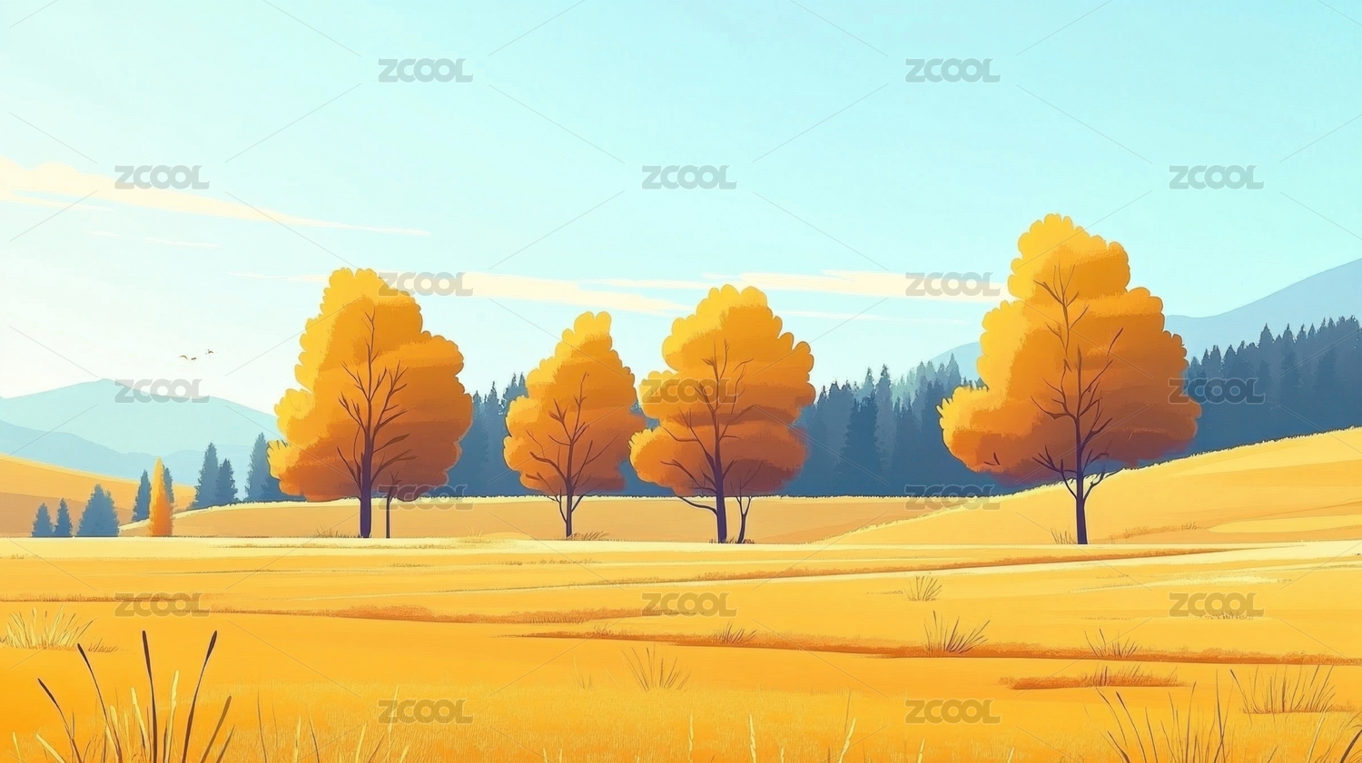 秋天户外自然风景插画
