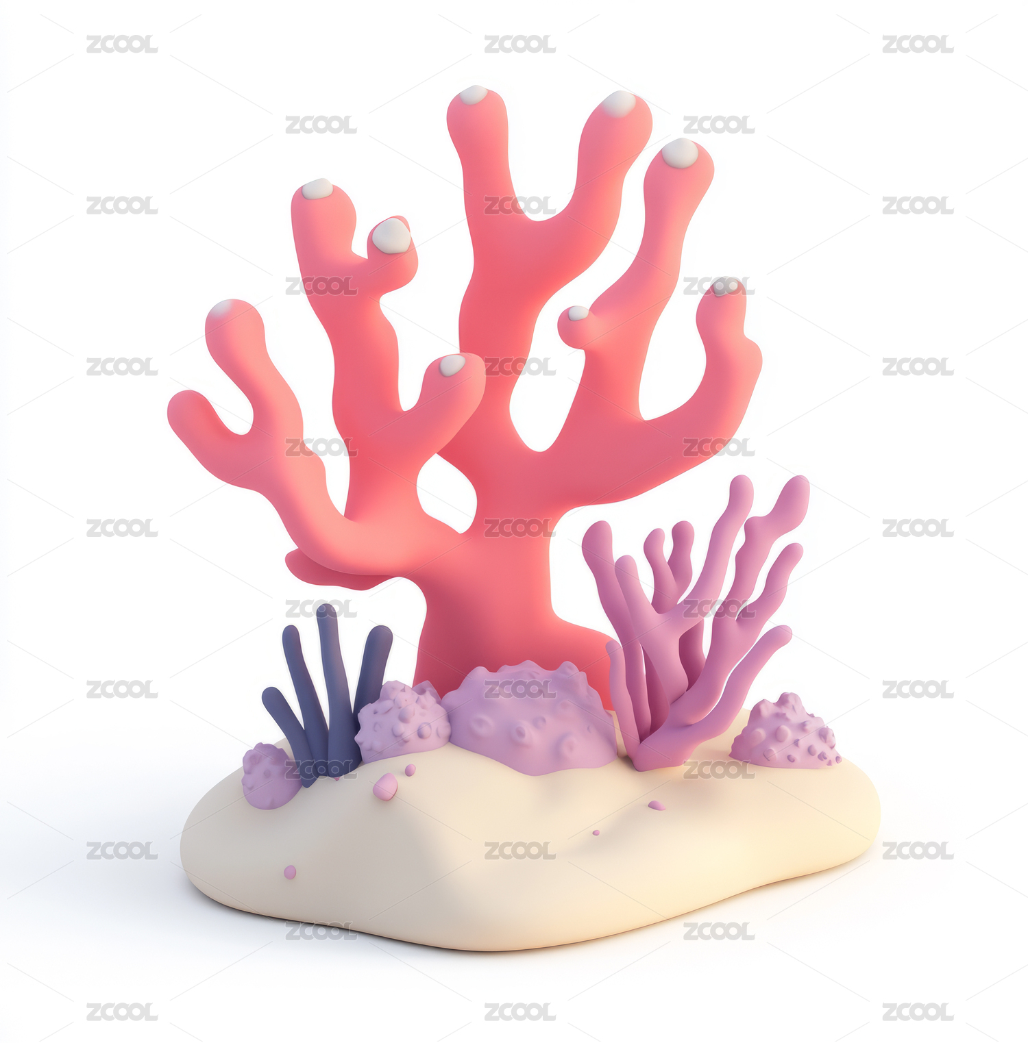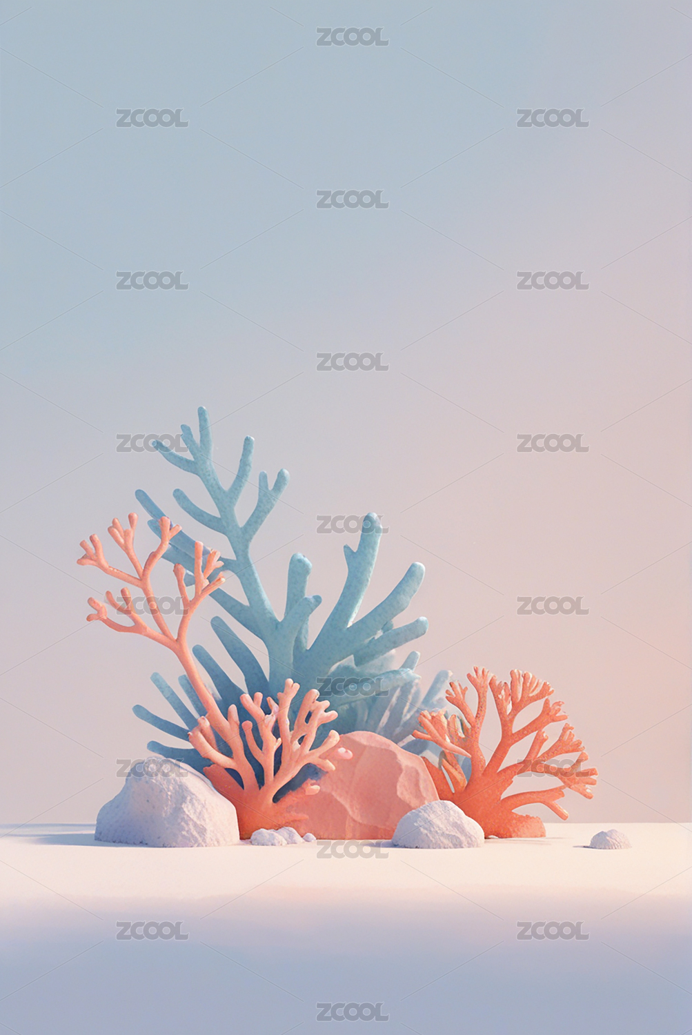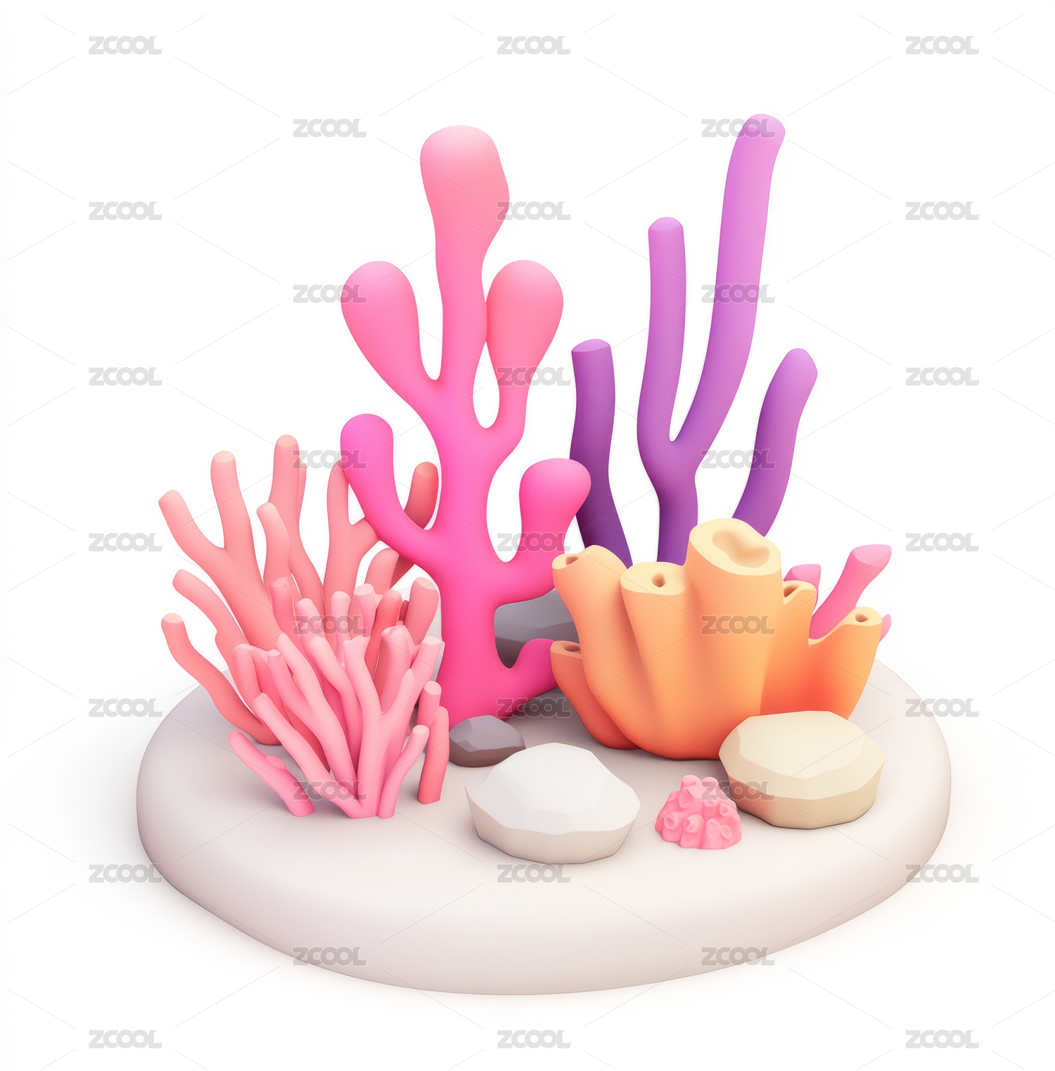 三维立体海底世界童趣珊瑚礁水草小场景背景