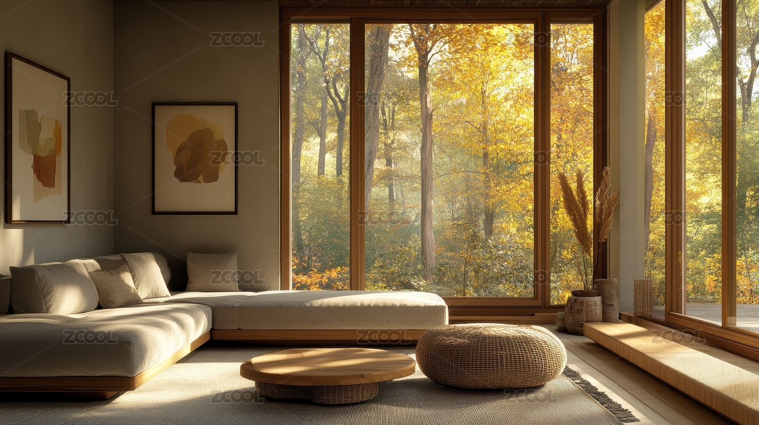 客厅,落地窗,沙发,家居,设计,舒适,现代,自然,木质,阳光