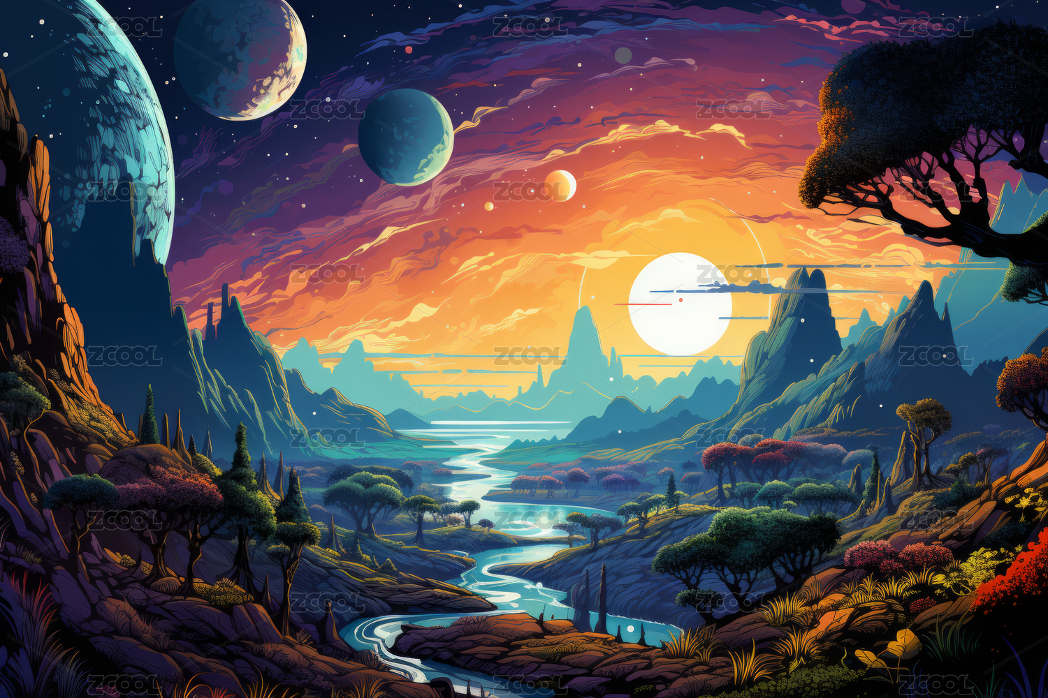 AI数字艺术,自然,风景,天空,地形,高山,背景,自然美,户外,夜晚
