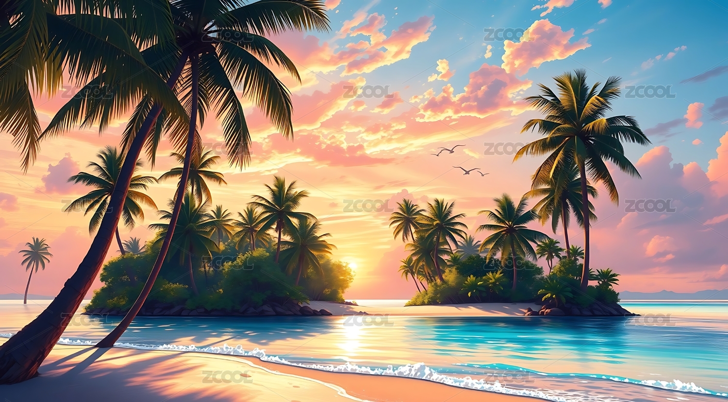 蓝色大海,沙滩和棕榈树,热带旅游背景