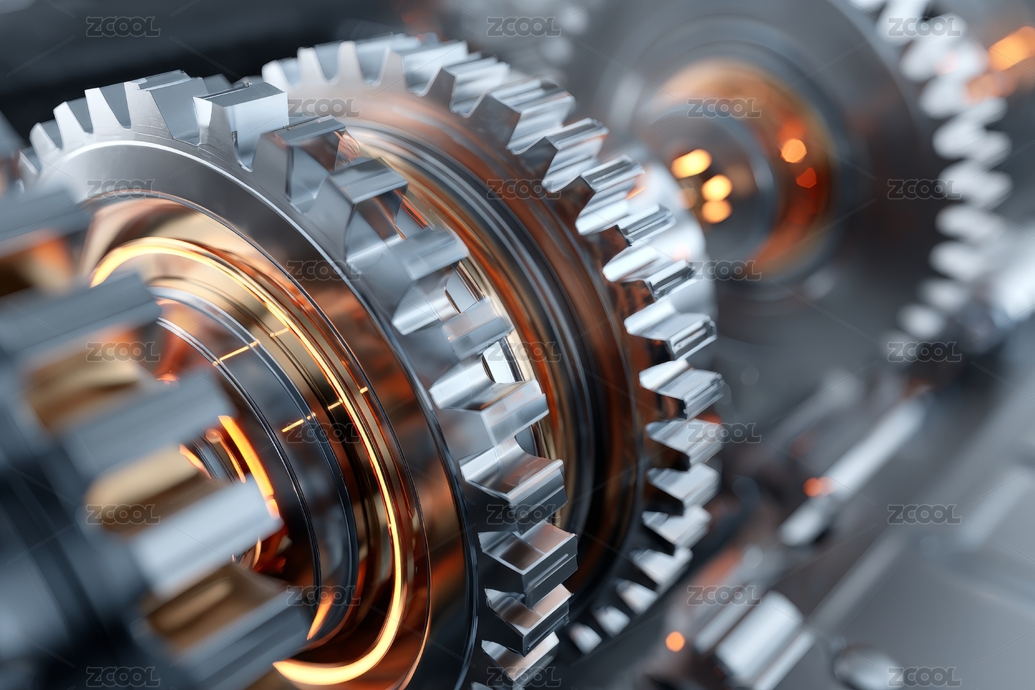 抽象精密度齿轮高科技电路与芯片3D渲染