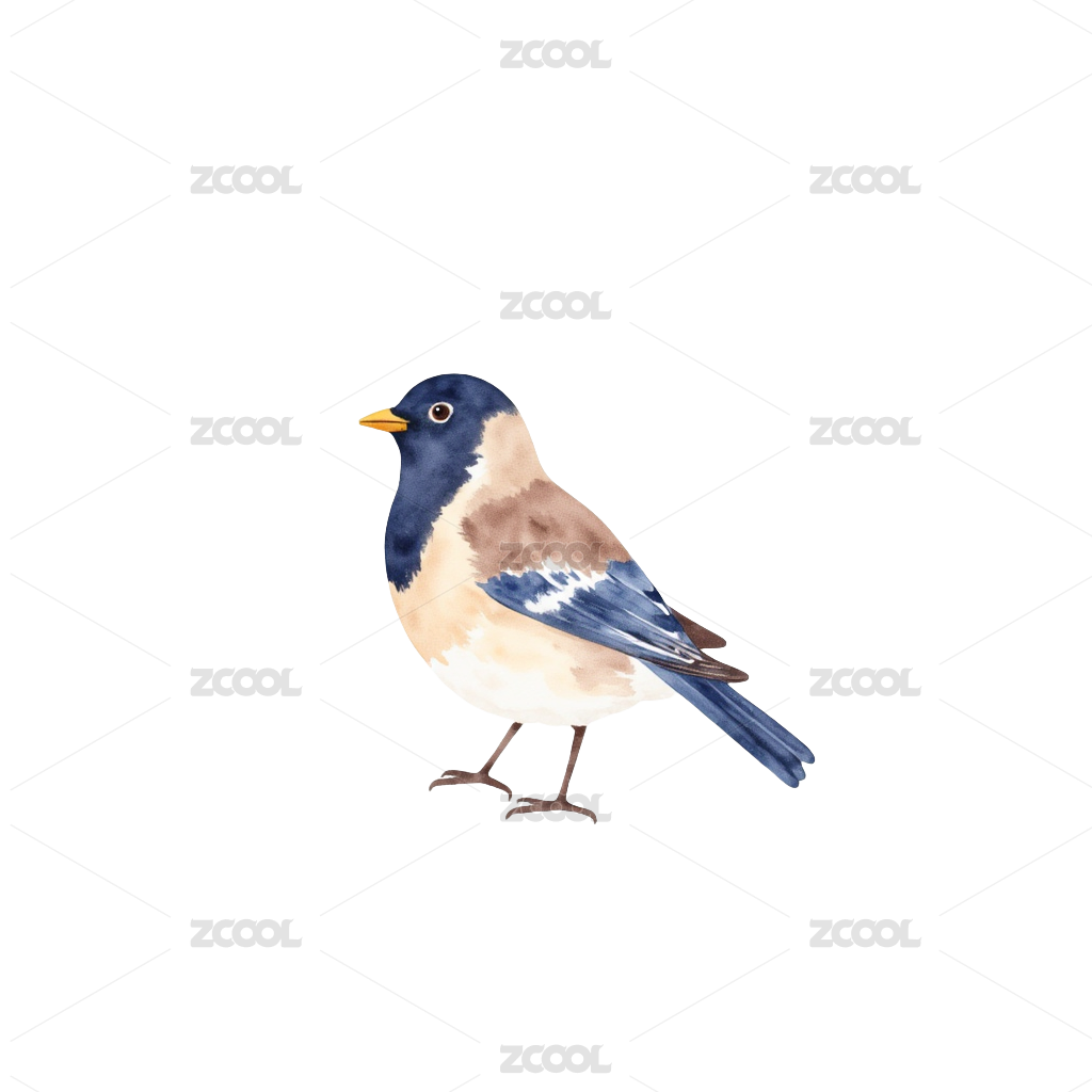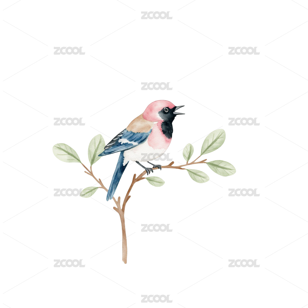 水墨画,啄羽,小鸟,树枝,低头,悠闲,休憩