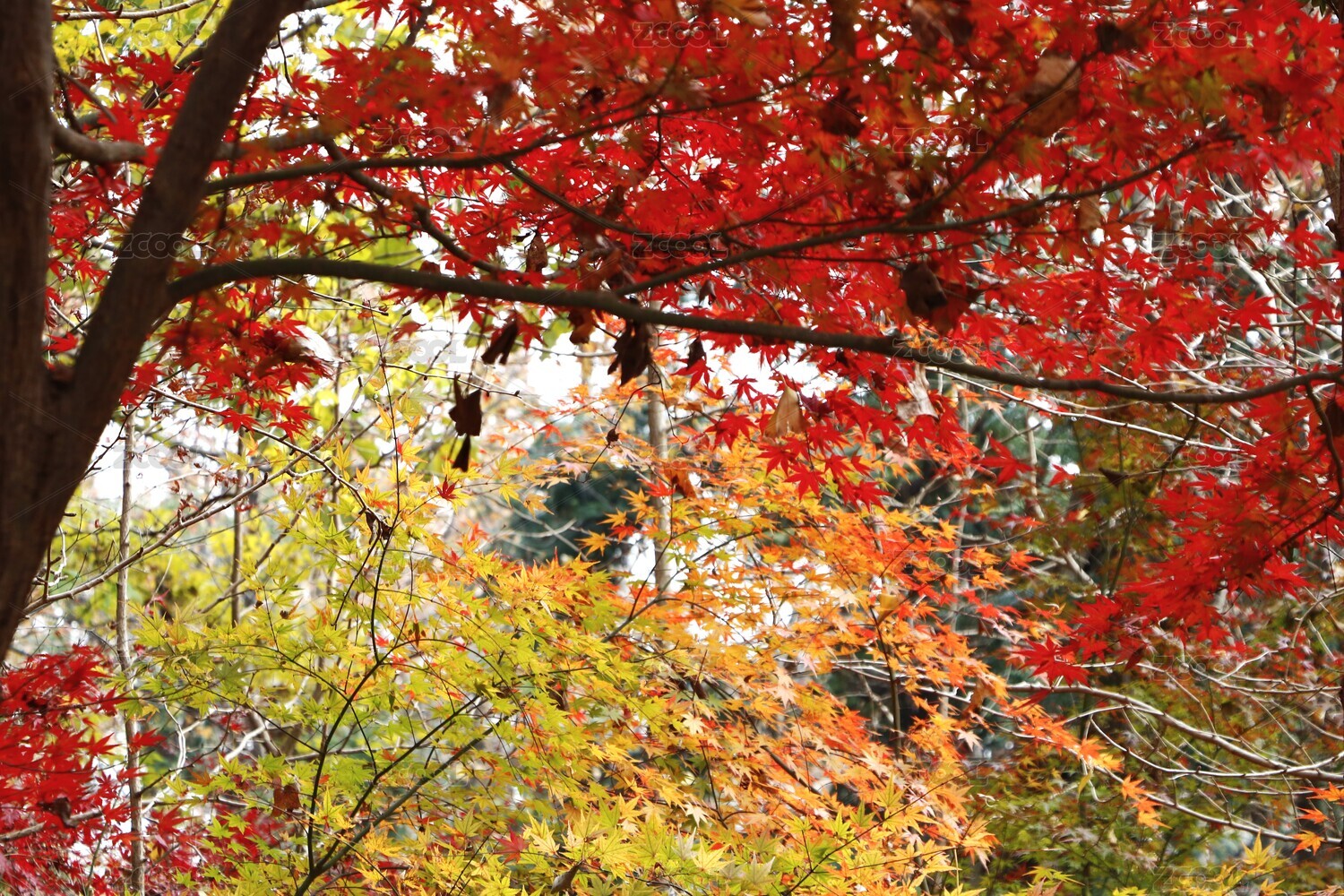 红叶繁茂的秋日树景