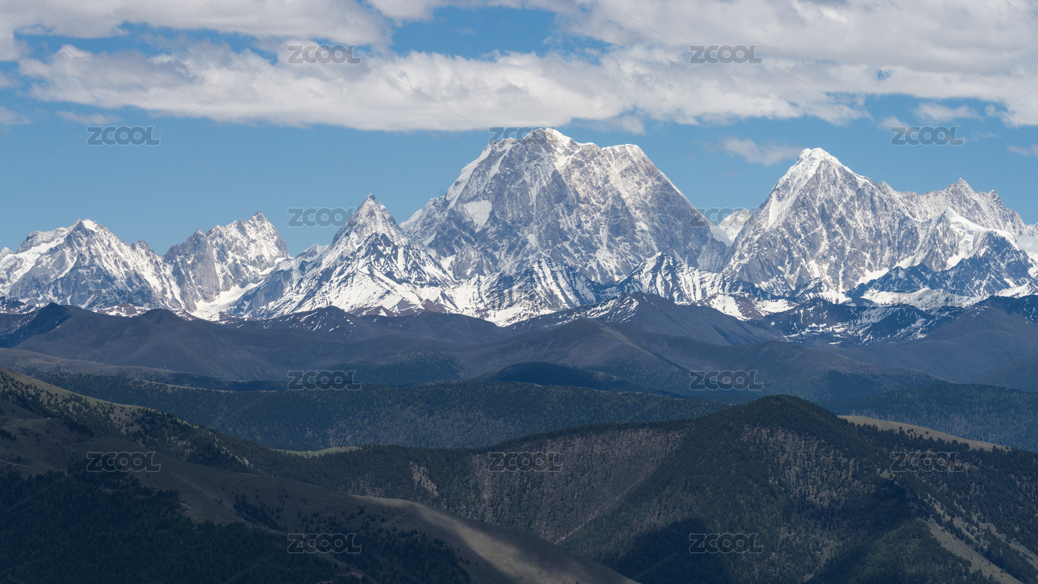 中国四川甘孜州川西居里寺垭口贡嘎雪山风光