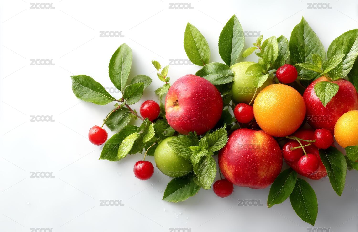 留白,新鲜,白色,水果,夏天,夏季,水彩画,果实,果子,美食