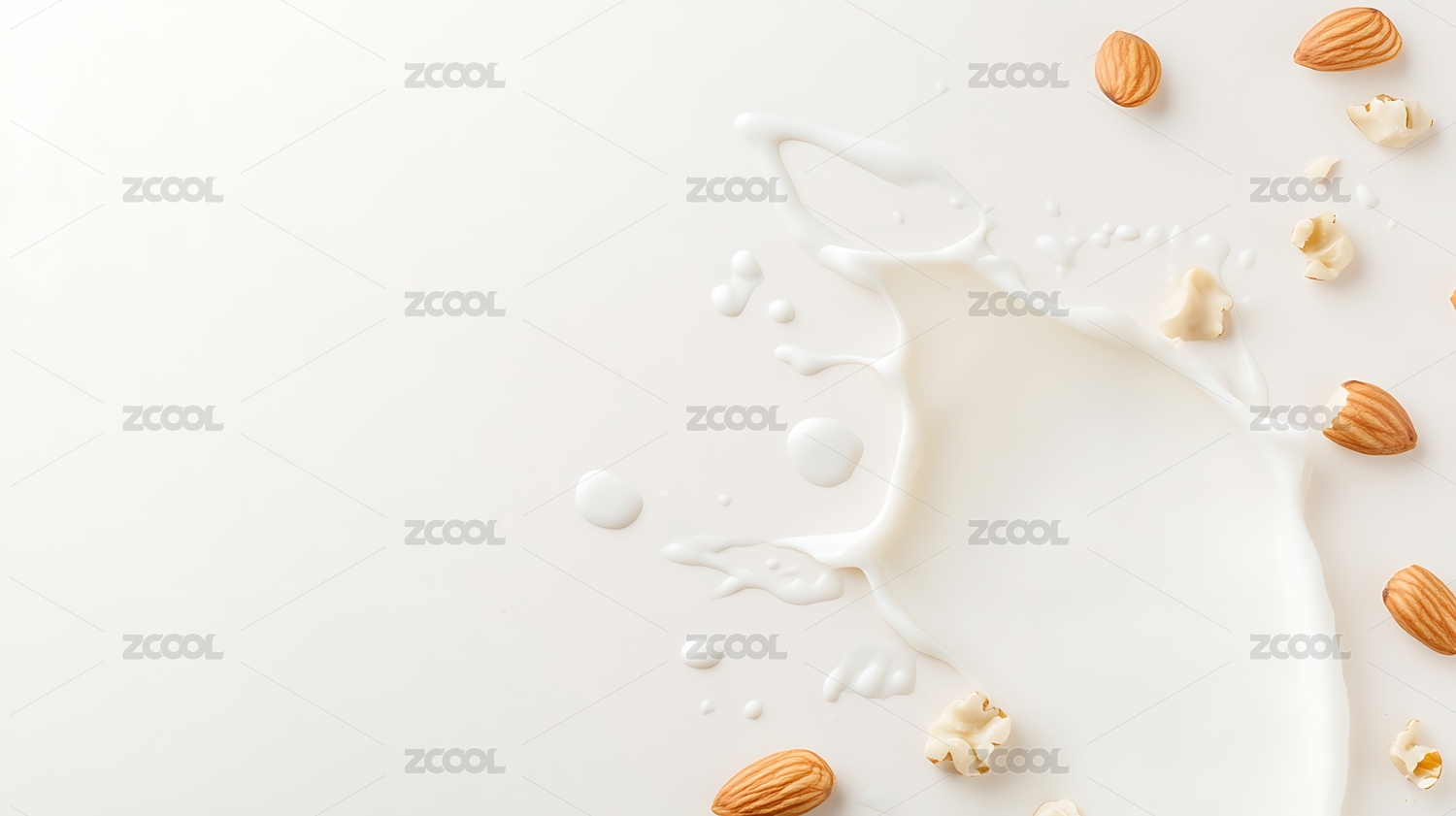 杏仁,牛奶,飞溅,动感,清新,美食,浅色调,飞扬,美味,早餐