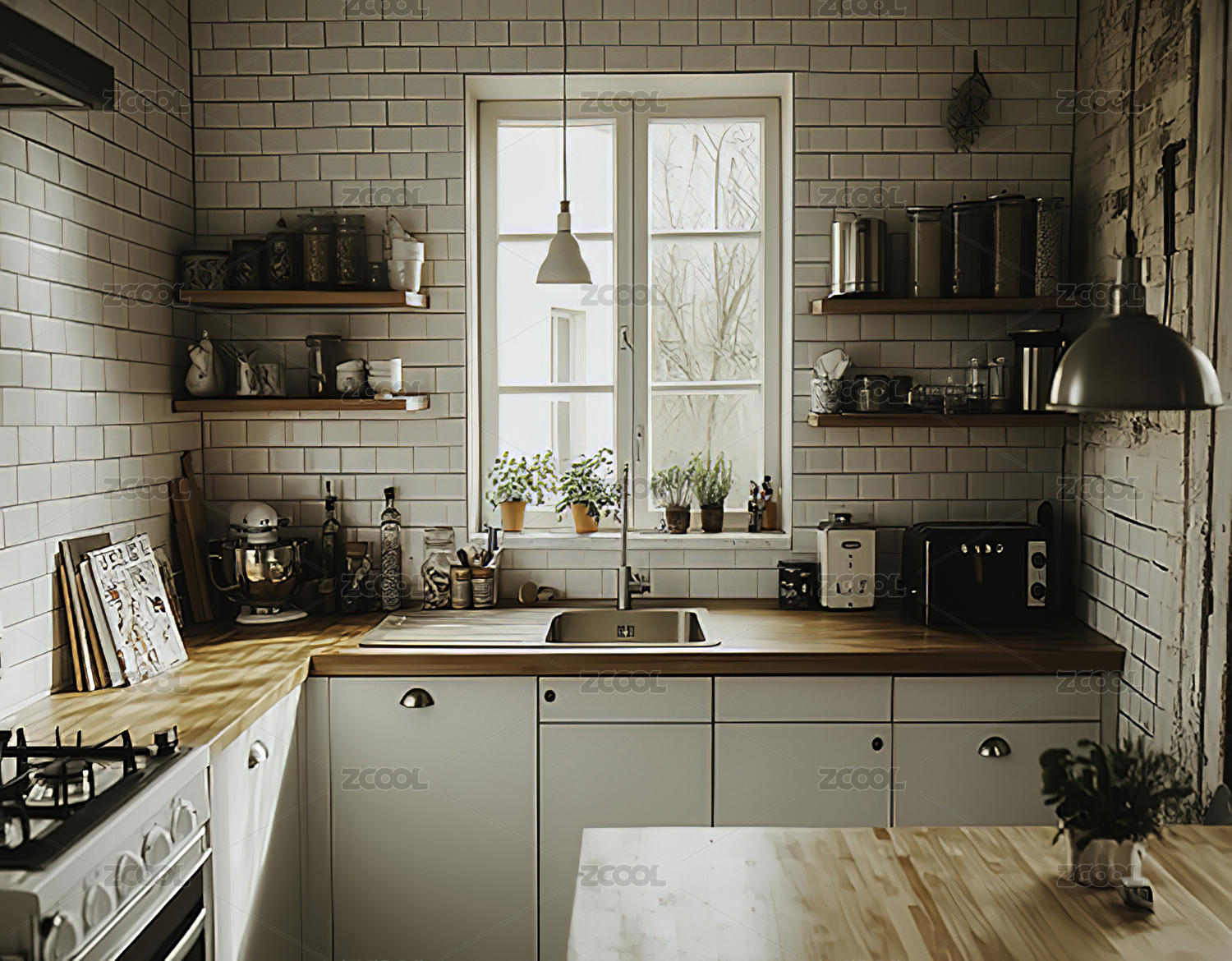 现代极简家居厨房场景