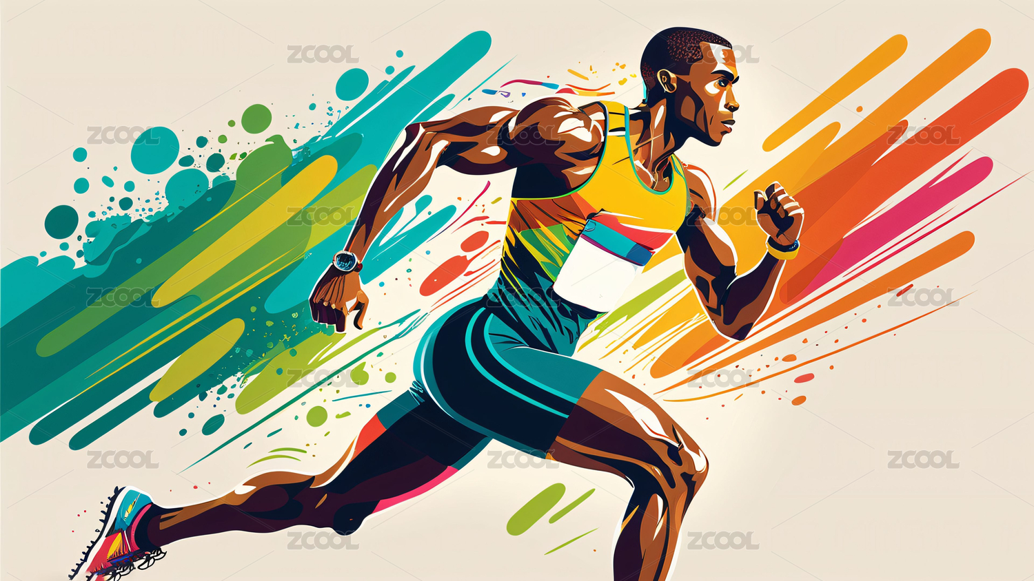 奔跑的运动员充满活力与速度感的艺术插画