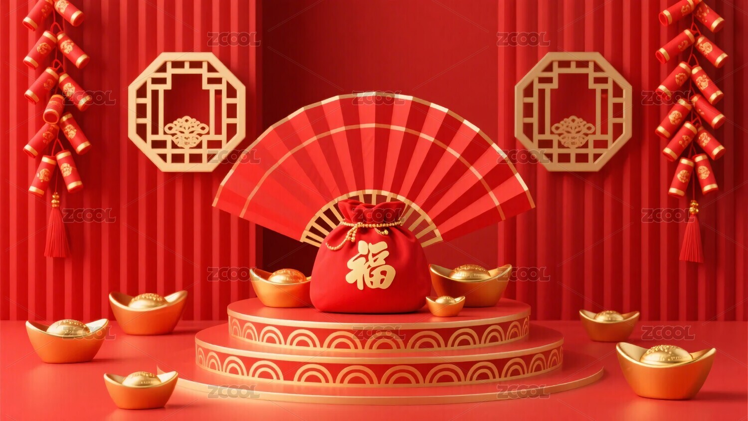 红包喜庆感新春展示场景