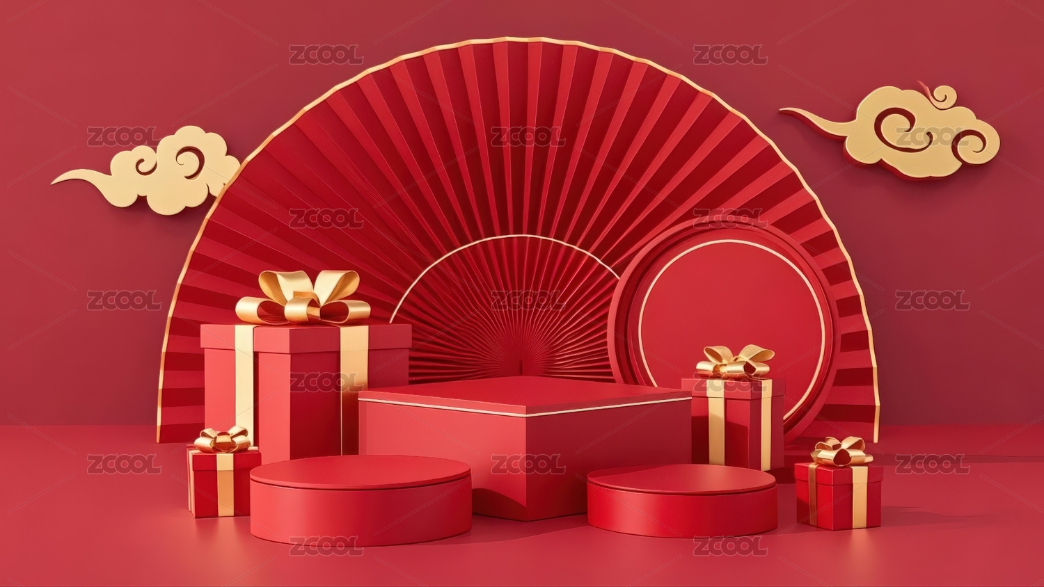 喜庆中国风新年礼物场景