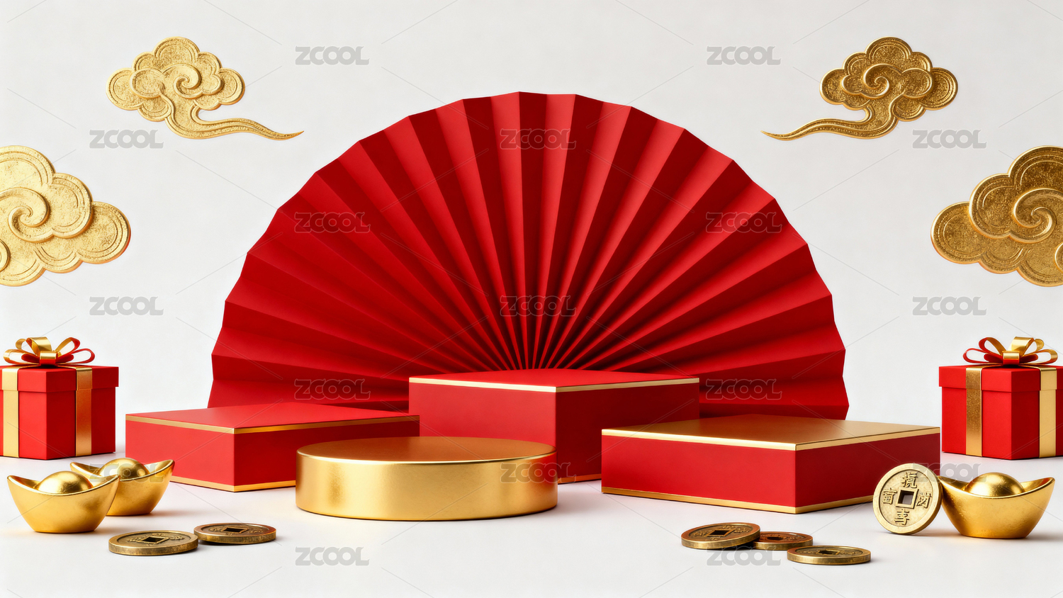 喜庆的中国新年礼物盒场景