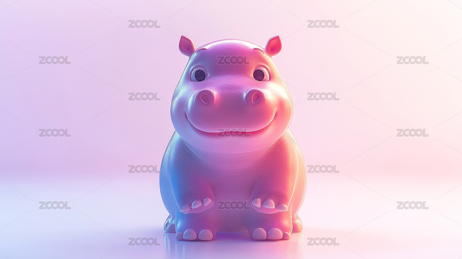 可爱,形象,卡通,表情,犀牛,灰色,耳朵,独角,微笑,正面视角