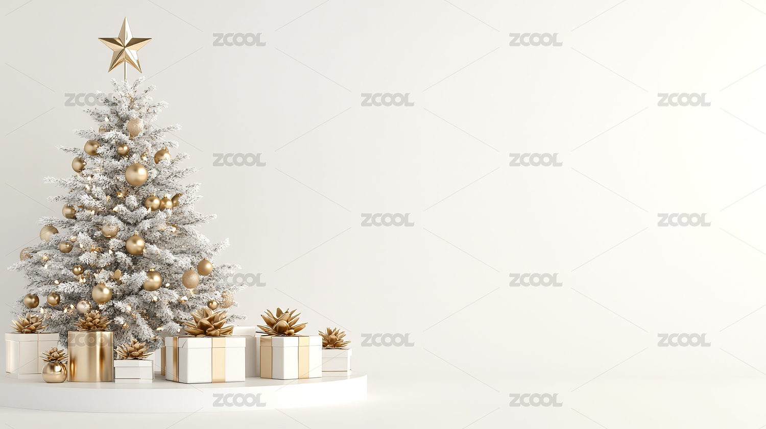 白色圣诞树与礼物盒装饰