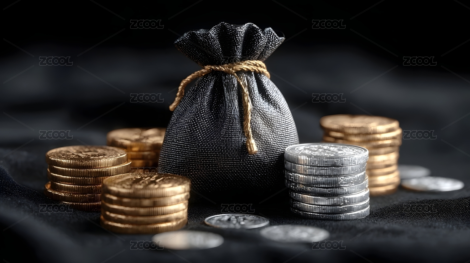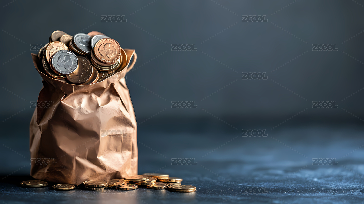 纸袋与硬币的财富象征