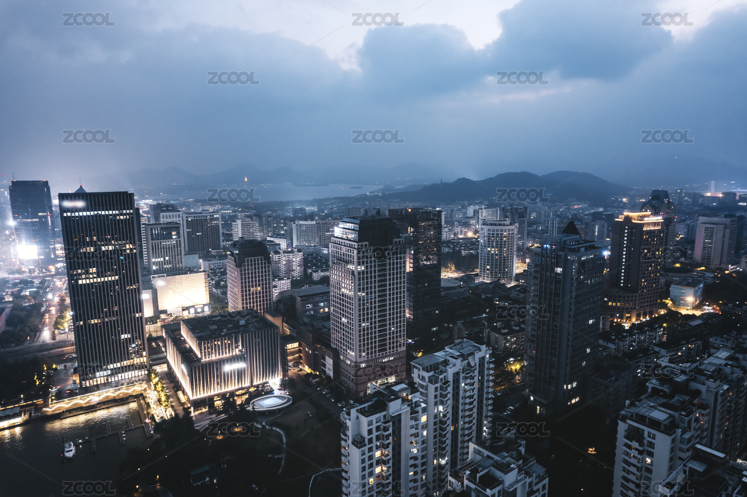 义乌三鼎大厦万豪酒店建筑夜景航拍