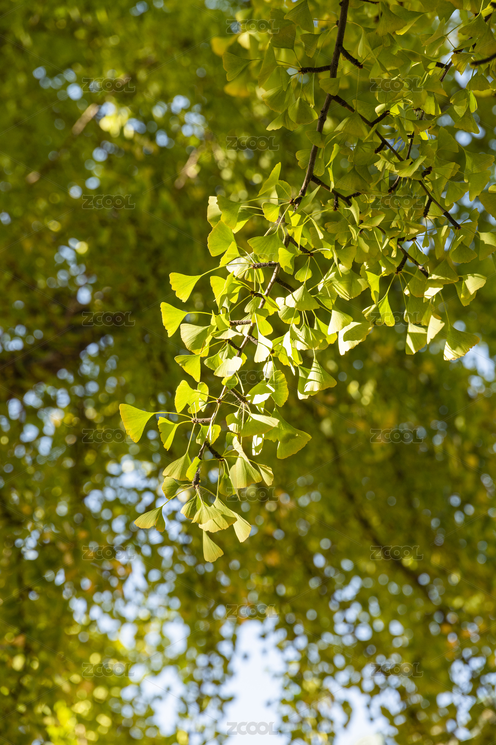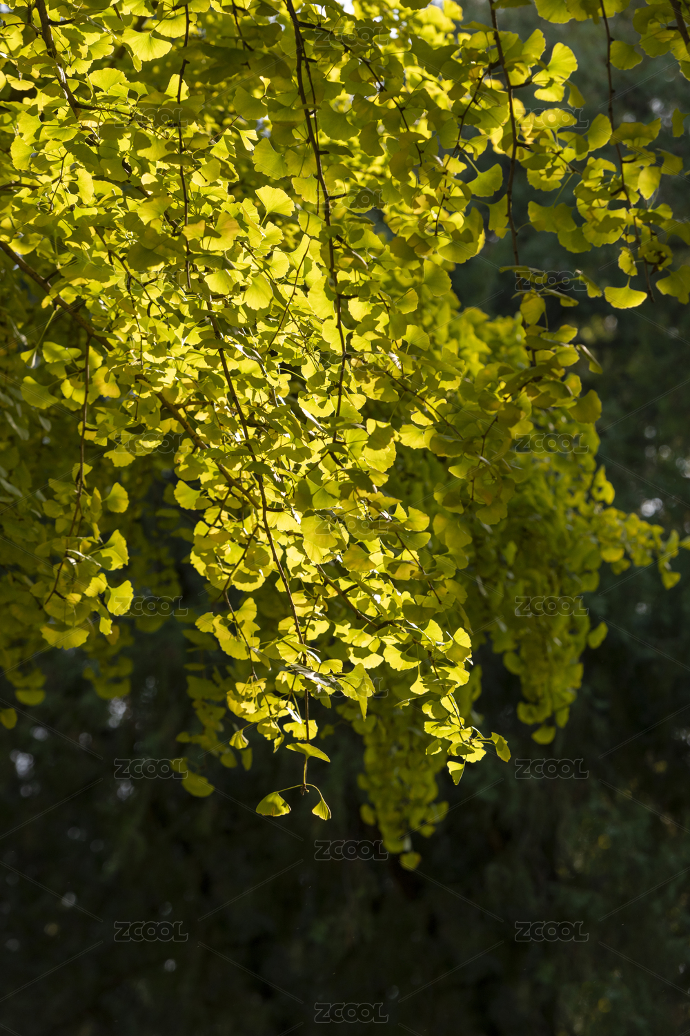 秋天阳光下的银杏树叶