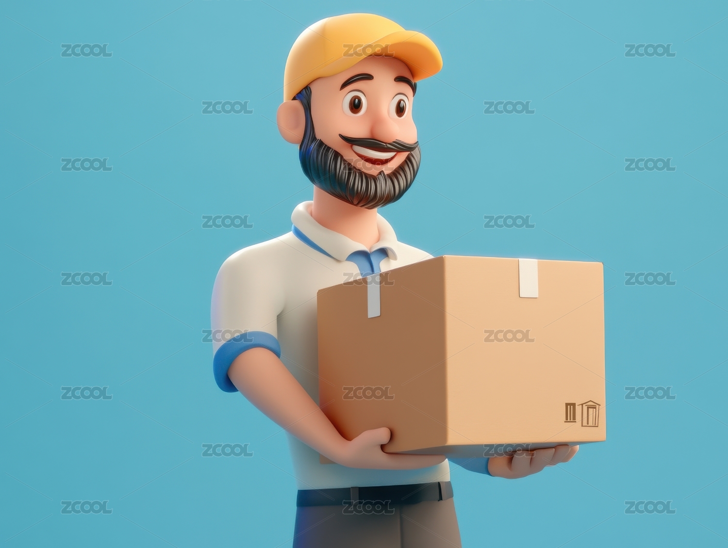 3D,快递员,插画,插图,电动车,送餐员,外卖,开心,微笑,服务