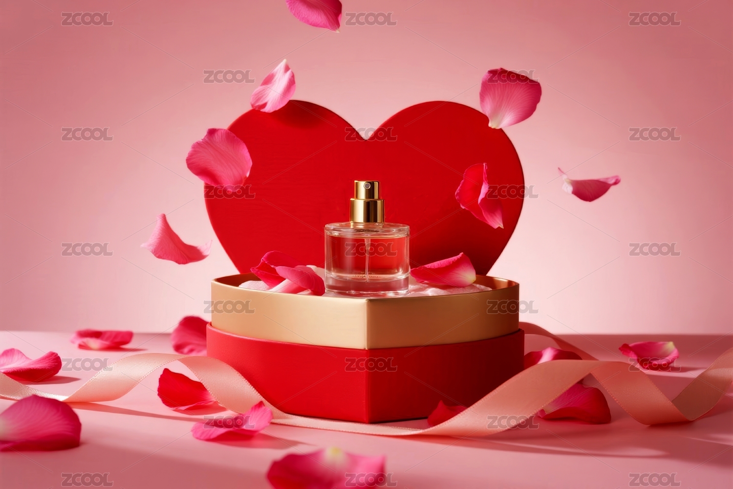 香水瓶与玫瑰花瓣的梦幻场景