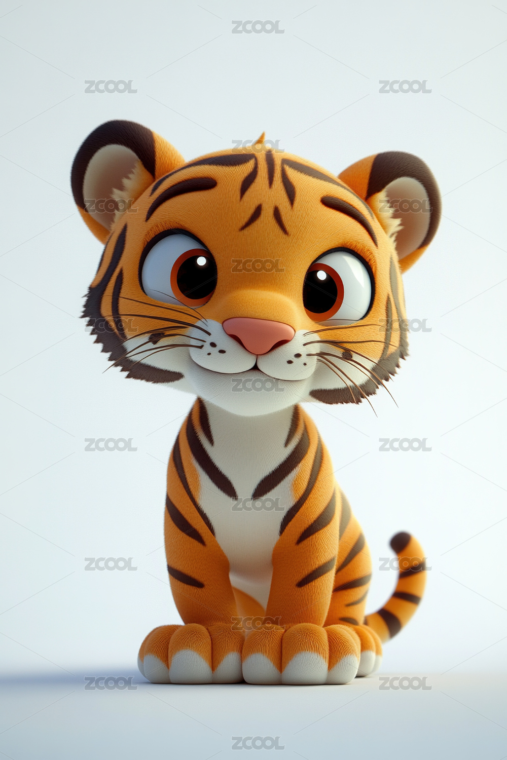 插画,3D,全身像,微笑,立体插画,红色,卡通,可爱,老虎,吉祥物