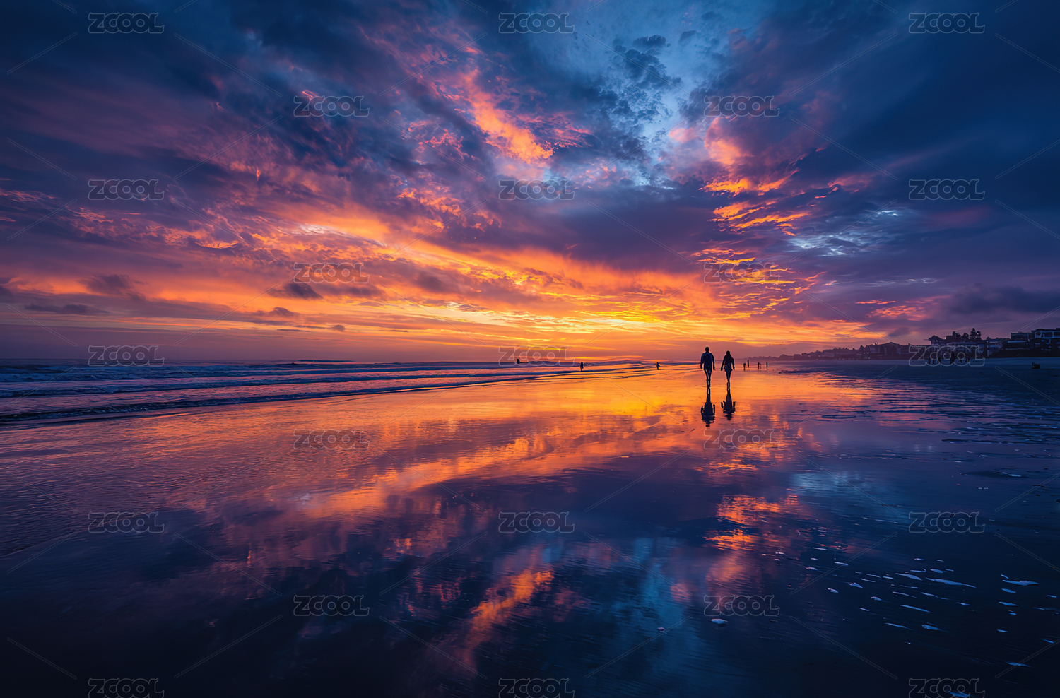 亚洲,印度尼西亚,巴厘岛,库塔海滩,日落,晚霞,五彩,霞光,海,印度洋