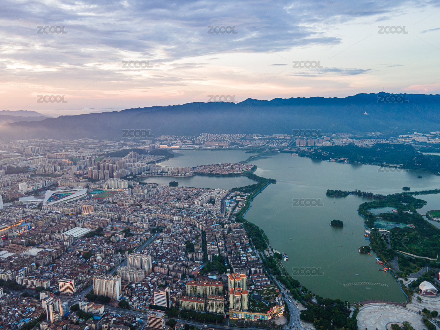 航拍广东省肇庆市城市风光天际线