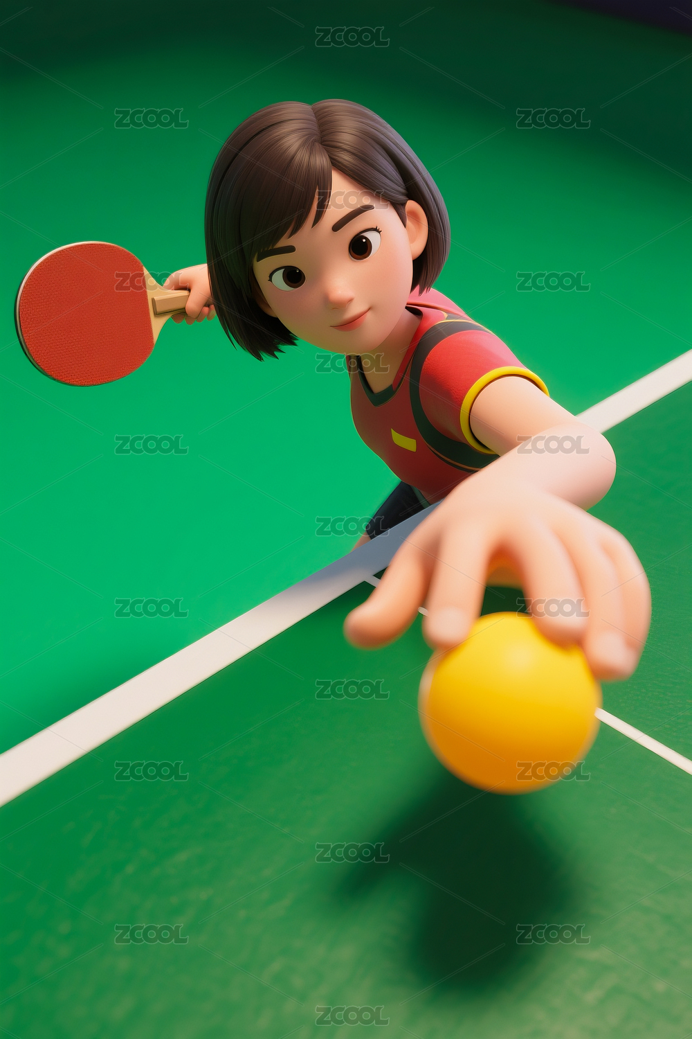 3d,卡通,体育,运动,人物,比赛,AIGC202401,跑步,女,乒乓球